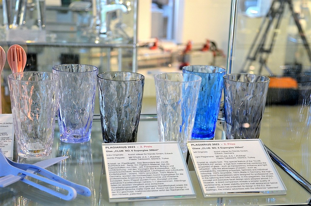 Auf Platz Zwei steht METPLAS A.S. aus der Türkei. In diesem Fall wurde ein hochwertiges Glas von koziol mit Form, Konzept und Facettendesign fast identisch nachgeahmt und obendrein mit „patended“ beworben. Produkte von koziol sind bei Fälschern sehr beliebt.