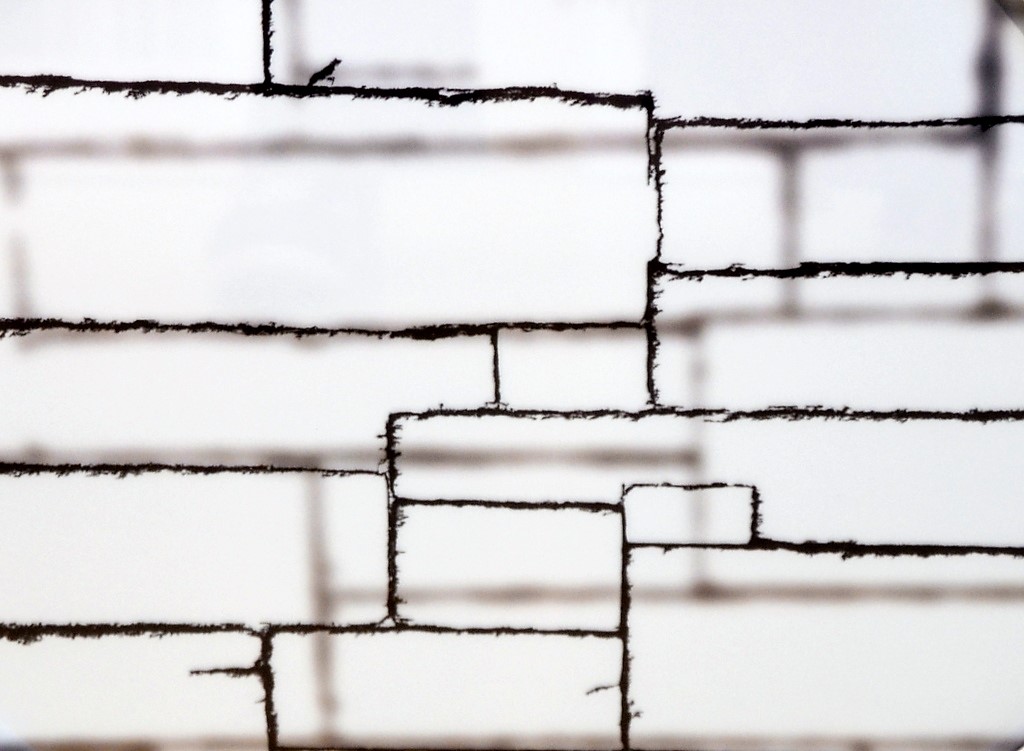 Norbert Sarrazin hat viel mit Schichten experimentiert. Fotografien auf Folie bzw. Papier liegen hintereinander, durch Glasplatten getrennt. Die Montagen erzeugen einen fantastischen 3D-Effekt. Andere Werke weisen die gleiche Linienführung auf, aber unterschiedliche Füllungen. Oder die Linien sind anders eingefärbt. „Ich habe einfach ausprobiert“, sagt Sarrazin, „wollte sehen, was passiert.“ Einige seiner experimentellen Werke erinnern an Piet Mondrian, einen niederländischen Maler, der zu den Begründern der abstrakten Malerei zählt. Andere sind mehr im Stil Jackson Pollocks, dem Erfinder der Dripping-Technik (durch tropfende Farbe ergeben sich Strukturen und Muster). Der studierte Fotodesigner spielt gerne mit Hausfassaden und entfernt sich durch fotografische Mittel vom ursprünglich dokumentarischen Charakter.