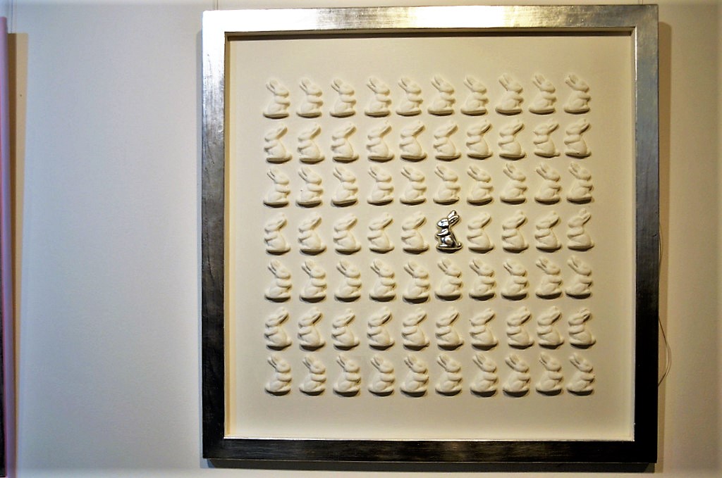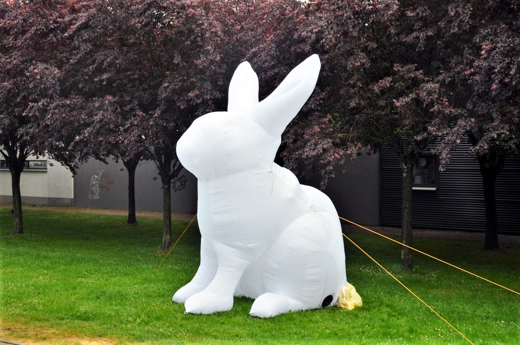 SOLINGEN (mh) – Der vier Meter hohe, weiße Hase auf der Wiese war schon von weitem sichtbar. Am Freitag eröffnete die Galerie Märzhase in den Güterhallen ihre Pforten. „Im Namen des Hasen“ war das Motto des Eröffnungsabends, und um Hasen ging es natürlich auch an diesem Abend. Von wahren Riesen bis zur batteriebetriebenen Werbeikone – Hasen, so weit das Auge reichte. Man wollte einen fröhlichen und entspannten, aber keinesfalls ernsten, Blick auf die Kunst werfen, die Darstellungen des Hasen durch die Epochen der Kunstgeschichte beleuchten und die eine oder andere Hommage lächelnd betrachten.