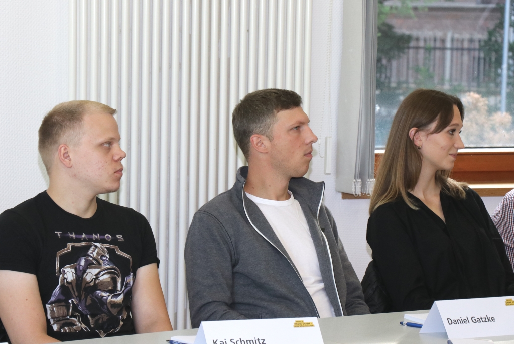 Abgesehen von 13 Brandmeisteranwärtern der Berufsfeuerwehr, die ihren Grundlehrgang erst im kommenden Oktober beginnen werden, begrüßte der Verwaltungsvorstand um Oberbürgermeister Tim Kurzbach die neuen Koolleginnen und Kollegen am Montagmorgen im Gründer- und Technologiezentrum (GuT).
