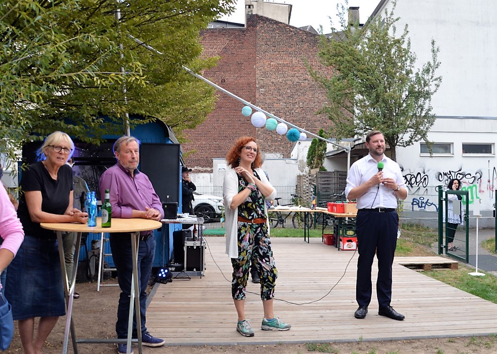 SOLINGEN (mh) – Am Donnerstagabend wurde der Gemeinschaftsgarten an der Kirchgasse (zwischen Düsseldorfer Straße 15/17 und Kirchgasse) in Ohligs offiziell eröffnet. Alle, die mit Rat und Tat zum Gelingen beigetragen hatten, waren gekommen, ebenso Gäste aus Wirtschaft und Politik.