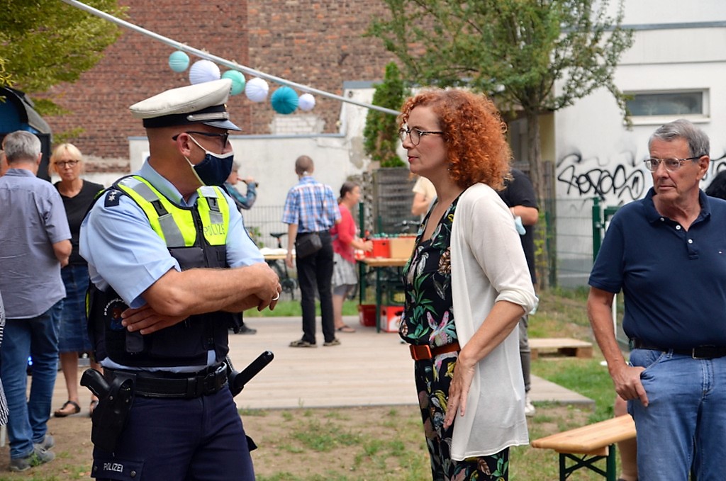 „Es gibt noch ein paar kleine Baustellen“, gestand sie lächelnd. „Aber wir freuen uns, dass der Platz schon genutzt werden kann. Hier soll eine kleine grüne Oase entstehen, die 30 – 40 Menschen Platz bietet.“ Kurzfristig wird noch ein Sonnen- und Windsegel aufgebaut. Schilder an Eingangsbereich und Bauwagen sollen als Wegweiser dienen.