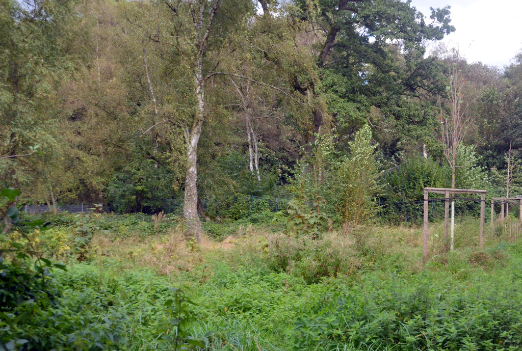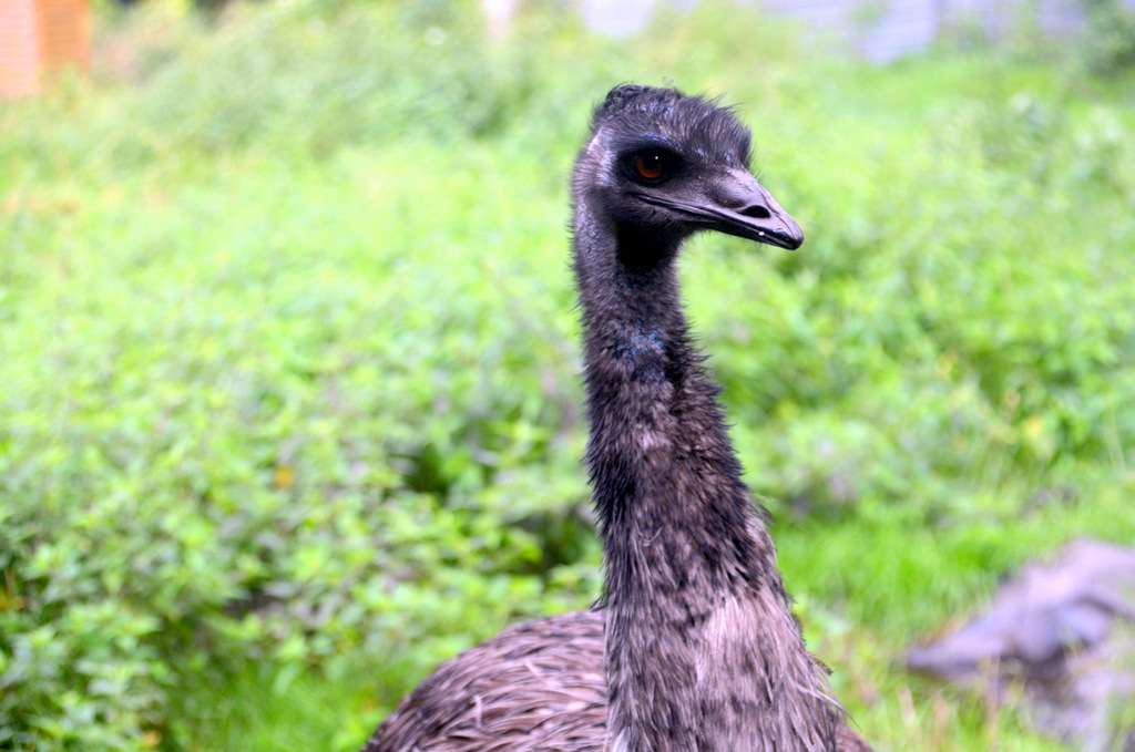Die 1.250 m² große Anlage bietet den Emus viel Platz zum Herumtollen und Verstecken. Dichte Gräser und Brennnesseln bieten ihnen Schutz und Rückzugsmöglichkeiten; oft sieht man sie kaum mehr im hohen Gras sitzen. Ab und zu schneiden die Tierpfleger das Gestrüpp zurück – doch meist bleibt es hoch genug für die Emus, die es lieben, sich durchzuzwängen.