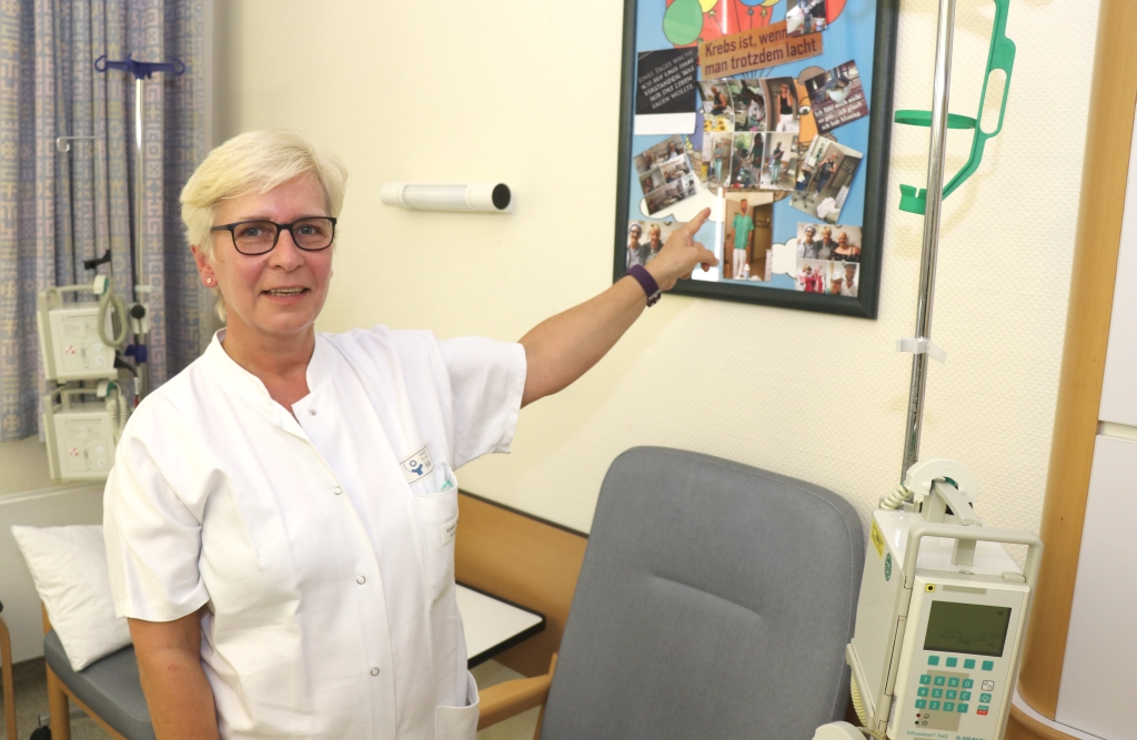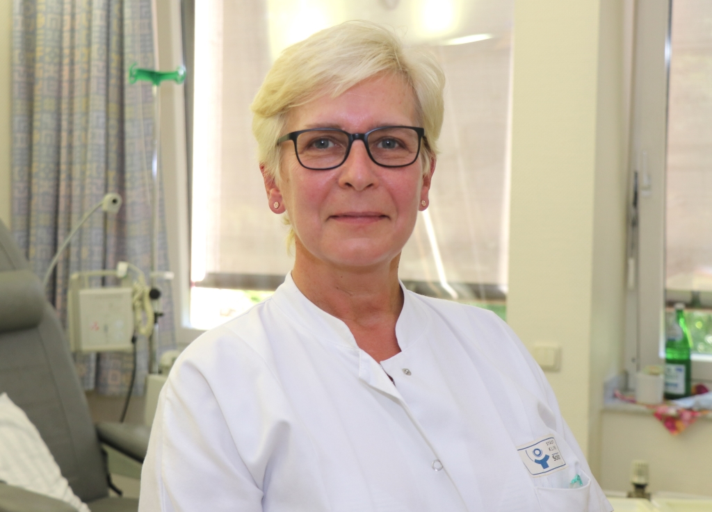 Kirsten Gardlowski ist seit 1981 im Klinikum beschäftigt. Nach ihrer Ausbildung war sie zunächst vier Jahre in der Inneren Medizin eingesetzt, bevor sie in Mutterschutz ging. Nach ihrer Rückkehr 1996 arbeitete sie in der operativen Gynäkologie. „Viele Patientinnen hatten eine onkologische Vorgeschichte“, erinnert sich Gardlowski. „Sie bekamen Chemotherapie. So bin ich zu diesem Aufgabenbereich gekommen.“ Die Chemo wurde zunächst stationär verabreicht, bevor sich 2007 die Möglichkeit der ambulanten Therapie in der Tagesklinik ergab.