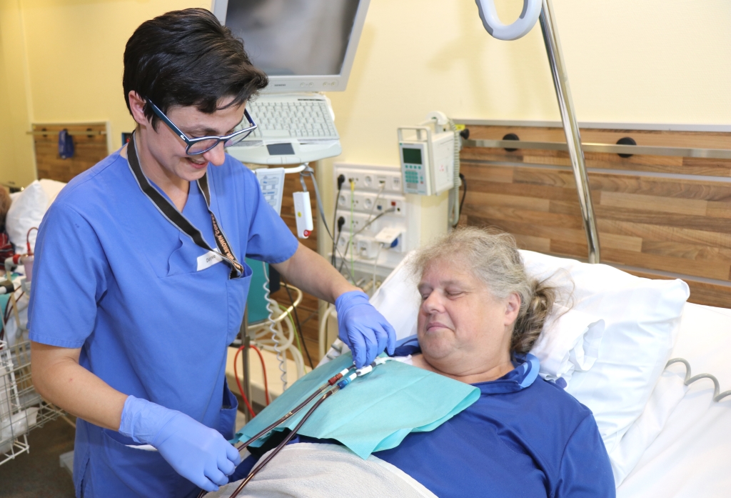 Während der Dialyse behält sie stets die Vitalwerte ihrer Patienten im Auge, denn „es kann passieren, dass es zu einem Blutdruckabfall kommt oder der Patient Krämpfe bekommt“, berichtet sie. Gearbeitet wird in der Abteilung im Zwei-Schicht-System mit Früh- und Spätschicht. Eine Nachtschicht gibt es seit zwei Jahren nicht mehr, die Sonntage sind ebenfalls frei.