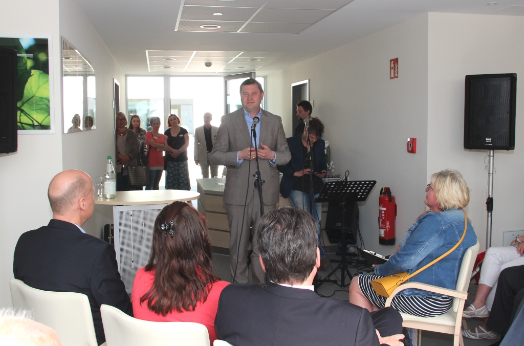 Am Samstag hatten Neugierige zum ersten Mal die Gelegenheit, einen ausführlichen Blick in den Neubau zu werfen. Davon wurde bei bestem Wetter auch rege Gebrauch gemacht, so dass im neuen Solinger Hospiz ein ständiges Kommen und Gehen war. „Halleluja, wir haben ein Hospiz“, lobte auch Oberbürgermeister Tim Kurzbach in seiner Gastrede, der betonte, dass „wenn man sagen kann, dass sich jemand um die Menschen dieser Stadt verdient gemacht hat, dann ist es PHoS, dann ist es der Vorstand, dann ist es Cordula Scheffels. Sie haben sich um die Bürgerinnen und Bürger Solingens zutiefst verdient gemacht.“
