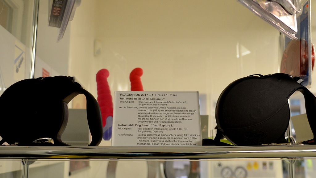 In diesem Jahr geht der erste Preis an den Fälscher der Roll-Hundeleine „flexi Explore L“. Das Original ist mit einer Aufrollmechanik versehen, die bei der Fälschung nicht funktioniert. Bisher hat es viele Kundenreklamationen gegeben, von den Reputationsschäden ganz zu schweigen. Die Anbieter agieren mit Scheinidentitäten und verkaufen den Artikel im Online-Handel über Amazon.co.uk. Der zweite Preis wird für das Plagiat des Bürostuhls „Silver“ verliehen.