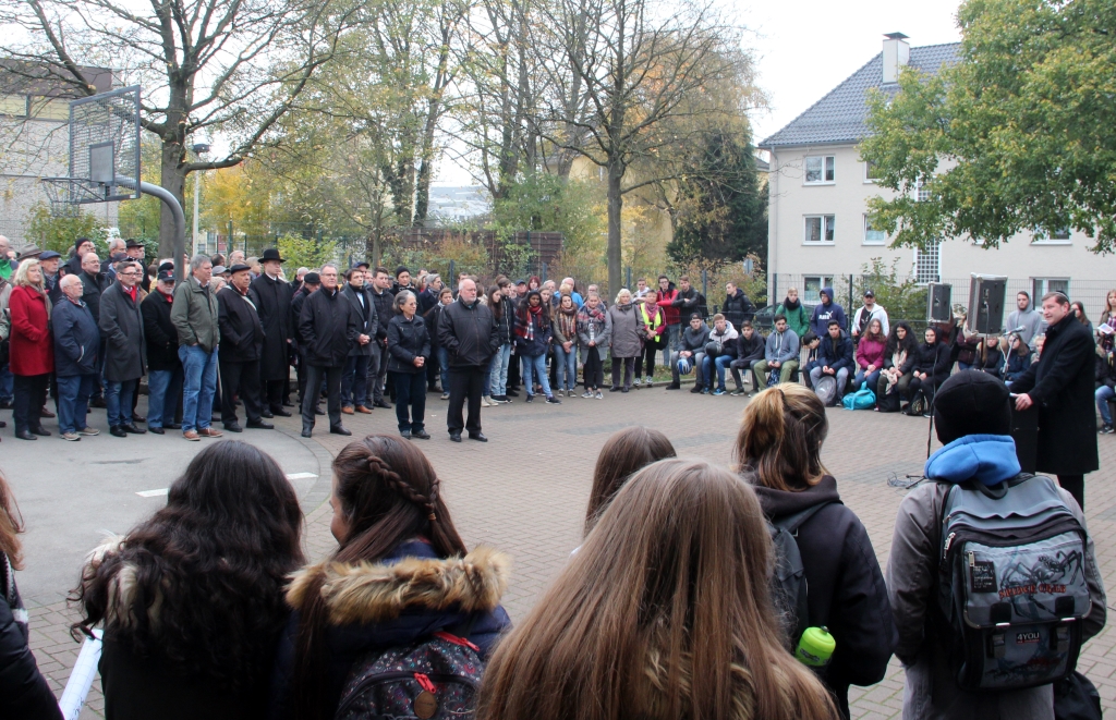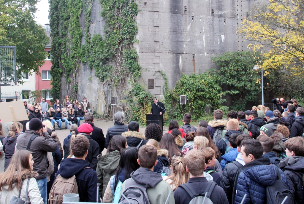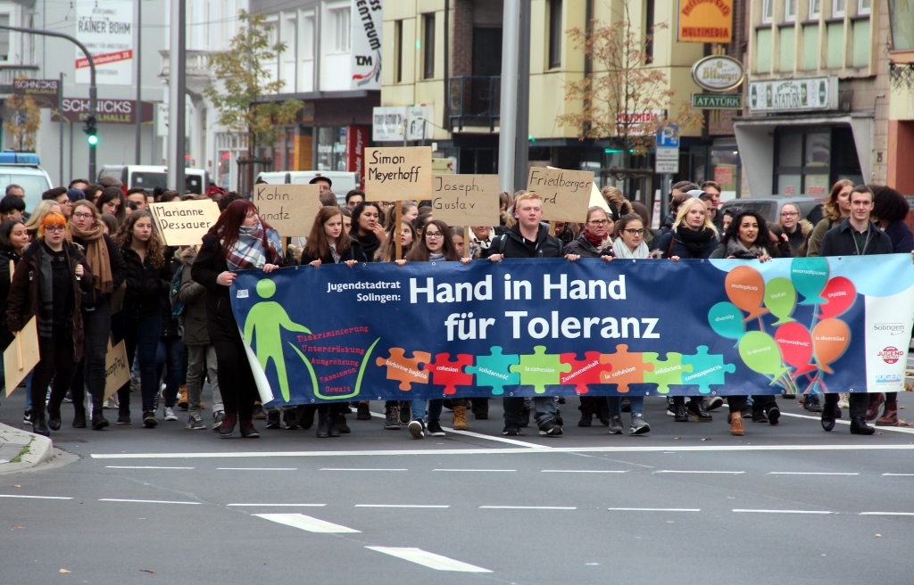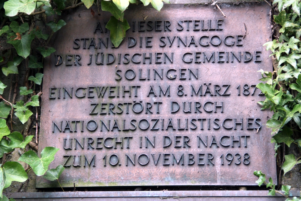 An der Malteserstraße in Solingen wurde im Anschluss daran am Ort der ehemaligen Synagoge gedacht, die in der Reichspogromnacht 1938 zerstört wurde. Mehrere Hundert Jugendliche folgten dem Aufruf des Solinger Jugendstadtrates und nahmen an der Gedenkveranstaltung teil. Zum Platz vor dem Rathaus zogen die Teilnehmer in einem Demonstrationszug.