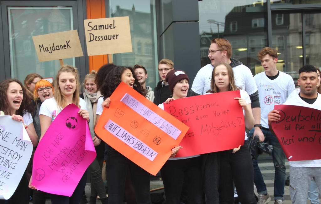 An der Malteserstraße in Solingen wurde im Anschluss daran am Ort der ehemaligen Synagoge gedacht, die in der Reichspogromnacht 1938 zerstört wurde. Mehrere Hundert Jugendliche folgten dem Aufruf des Solinger Jugendstadtrates und nahmen an der Gedenkveranstaltung teil. Zum Platz vor dem Rathaus zogen die Teilnehmer in einem Demonstrationszug.