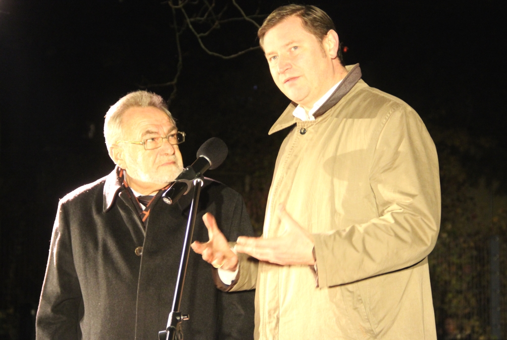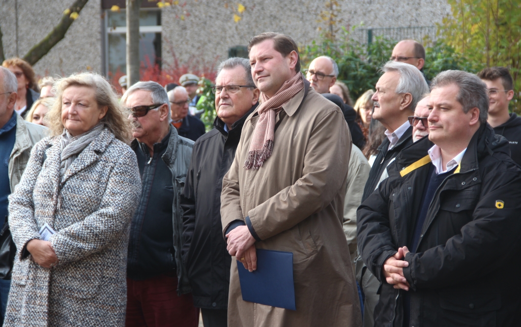 Am frühen Freitagnachmittag fand an gleicher Stelle das offizielle Gedenken für die Opfer von Nazi-Terror und Holocaust statt. Rund 250 Menschen, darunter zahlreiche Schülerinnen und Schüler, kamen zusammen. „Auch die Schicksale einzelner Juden hier aus Solingen sollen nicht untergehen in einer Zahl von Millionen. Dafür stehen die Stolpersteine“, sagte Pastor Edgar Daub von der Arbeitsgemeinschaft Christlicher Kirchen in Solingen (ACK). Er lobte die Arbeit der Schülerinnen und Schüler, die sich immer wieder auf den Weg machen, um die Stolpersteine in Solingen zu pflegen und zu putzen.