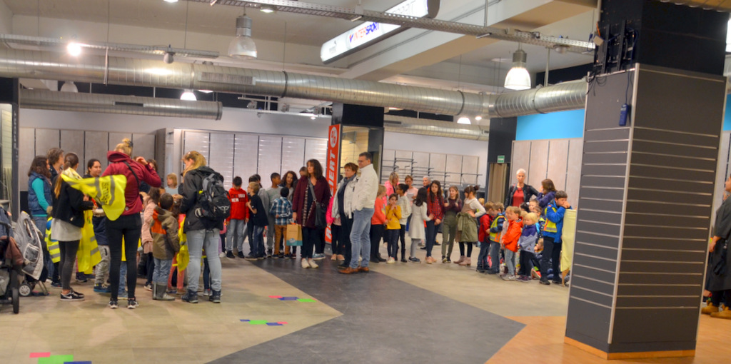 Treffpunkt war das leerstehende Ladenlokal – ehemals Intersport Borgmann – an der unteren Hauptstraße. Hier versammelten sich die rund 200 Besucher, während sich die Kollegen der Polizei auf Beobachtungsposten begaben. Noch schnell eine Generalprobe der Kleinen, die den Song „YMCA“ eigens für Thomas Müller neu getextet hatten. Dann ging das Licht aus.