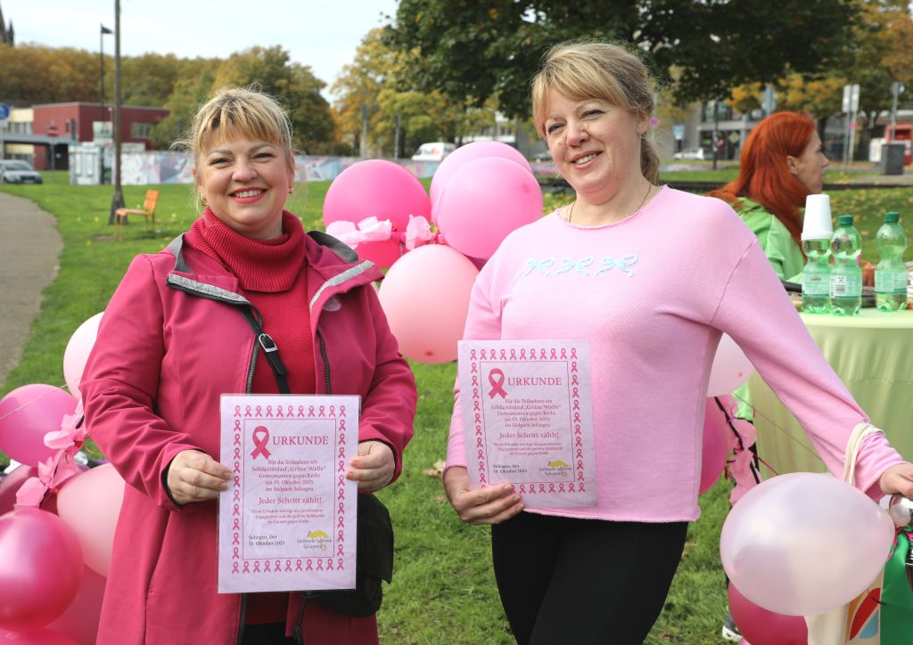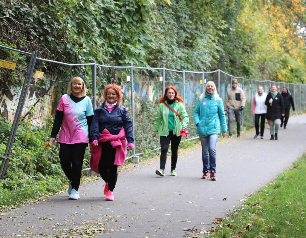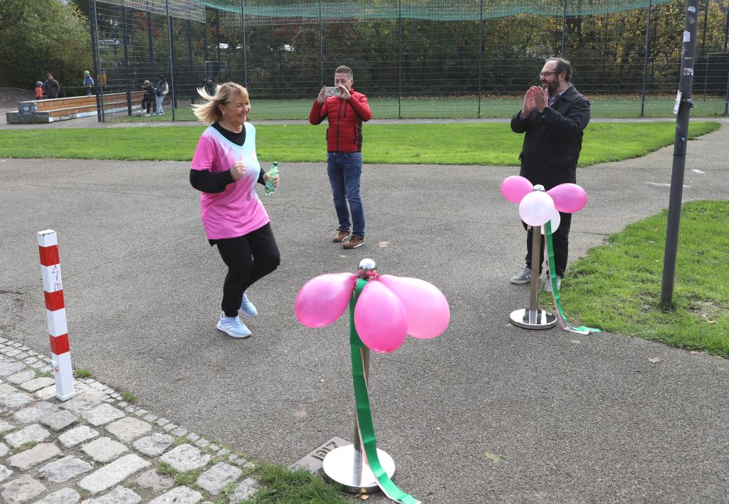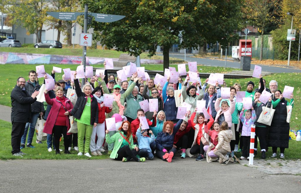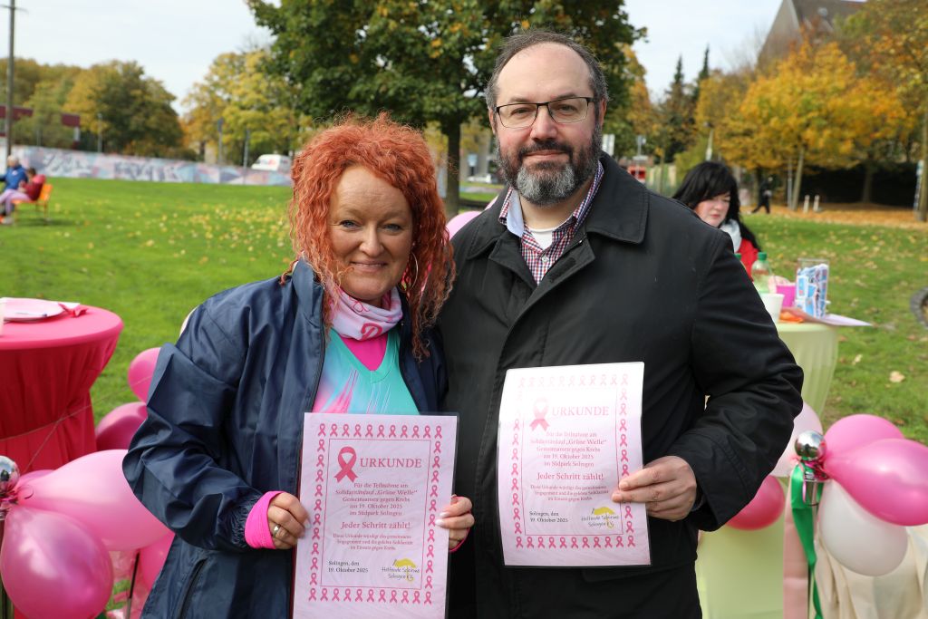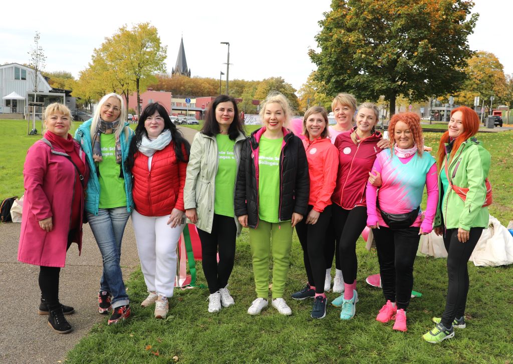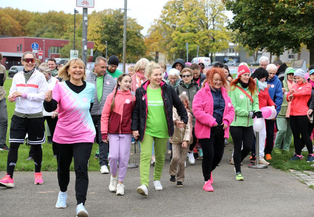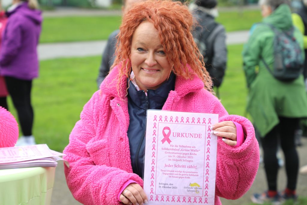 SOLINGEN (bgl) – Premiere geglückt! Am Sonntagmittag startete im Solinger Südpark erstmals ein Solidaritätslauf gegen Krebs – organisiert vom Verein Helfende Schirme e.V.. Unter dem Motto „Gemeinsam sind wir pink“ hatte der Verein zur Aktion „Grüne Welle – Gemeinsam gegen Krebs“ aufgerufen. Der Benefizlauf war Teil des Vereinsangebots „FlexiWoman“, das Frauen ermutigt, aktiv zu bleiben, sich zu bewegen und auf ihre Gesundheit zu achten.