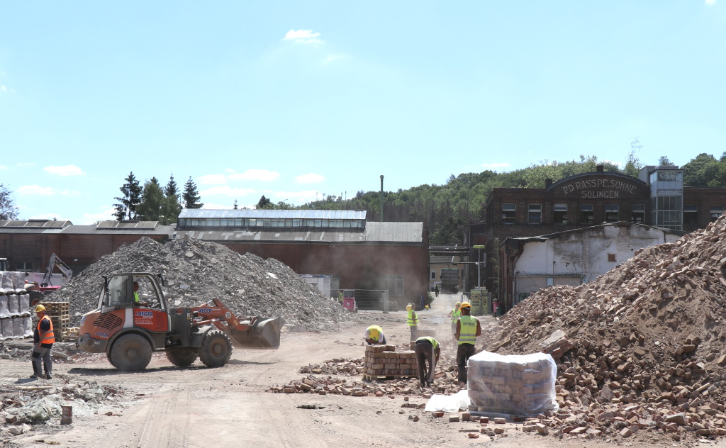 SOLINGEN (bgl) – Seit April finden auf dem Gelände der ehemaligen Firma Rasspe in Stöcken Abriss- und Sanierungsarbeiten statt, die im Januar kommenden Jahres planmäßig beendet sein sollen. Die Gesamtentwicklung soll zu Beginn 2022 abgeschlossen sein und geht einher mit der Vermarktung der Grundstücksflächen. In den kommenden Jahren soll dort ein moderner Gewerbepark entstehen.