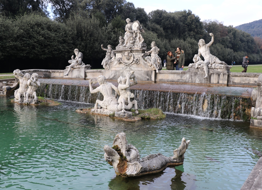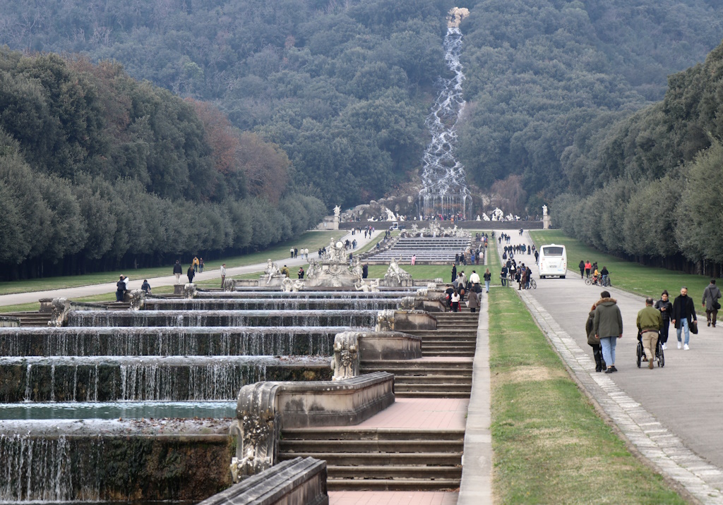 Bei einem Besuch des Schlosses sollte man bedenken, dass allein der Rundgang durch die Räume mehr als eine Stunde dauern kann. Man hat die Pracht der neapolitanischen Könige nicht vollständig gesehen, wenn man den großzügigen Park außer Acht lässt. Der 120 Hektar große Park besteht aus zwei Teilen: einem Bereich mit Springbrunnen und einem Landschaftsgarten im englischen Stil. Wir besuchten nur den ersten Teil, aber beim nächsten Mal werden wir den gesamten Park erkunden. Wenn Sie vom Spaziergang müde werden, können Sie für den Rückweg kleine Busse nutzen oder hinauf und hinunter fahren, um das unvergessliche Schauspiel der künstlichen Springbrunnen und Wasserfälle zu genießen.