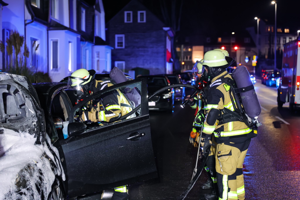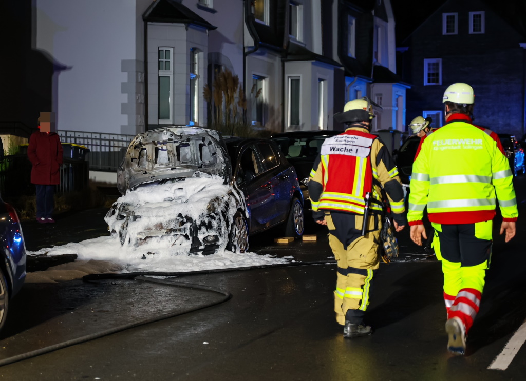 SOLINGEN (red) – Am Montagabend geriet auf der Remscheider Straße aus bislang ungeklärter Ursache gegen 21 Uhr ein geparkter PKW in Flammen. Einsatzkräfte der Feuerwache I (Mitte) an Katternberger Straße konnten den Brand des Fahrzeuges löschen, bevor umstehende Fahrzeuge Feuer fingen konnten.