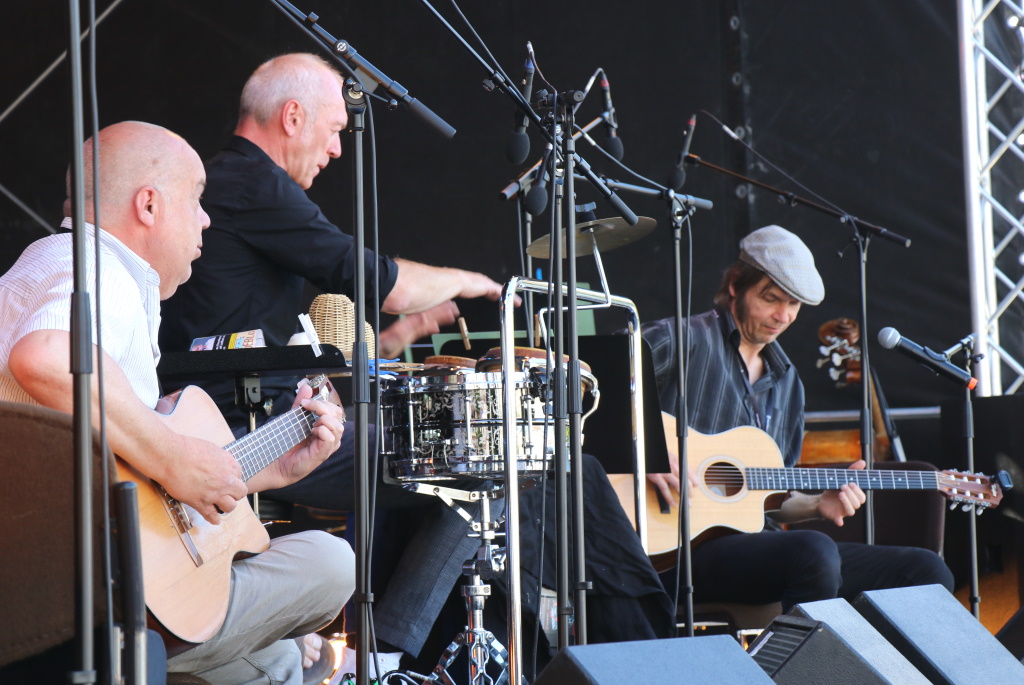 Denn zum Auftakt der diesjährigen Sommerparty Echt.Scharf.Solingen präsentierten die Veranstalter des Initiativkreises Solingen am Freitagnachmittag nicht nur ein echtes Novum, sondern beförderten die Veranstaltung auch musikalisch in ganz andere Sphären. Los ging es pünktlich um 17 Uhr, zum Auftakt spielte zunächst die dreiköpfige Solinger Kombo „Django Unchained“, die das Publikum auf eine fetzige Reise quer durch die Musikgeschichte nahm.