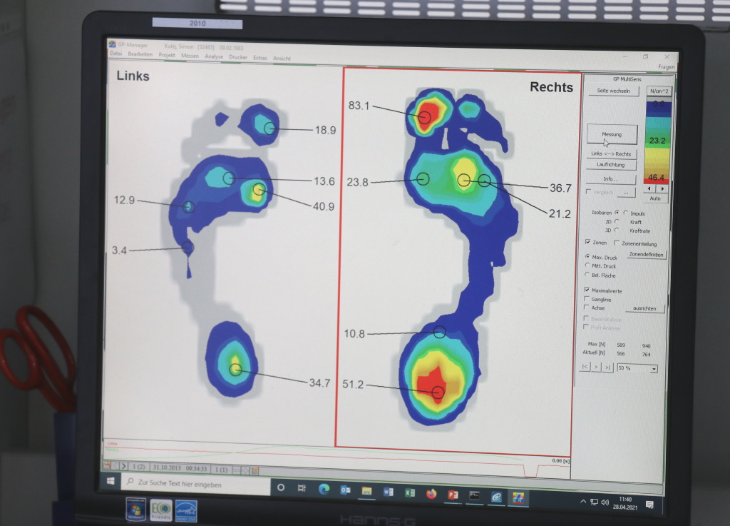 Die Einlagen werden nach ärztlicher Verordnung für jeden Diabetes-Patienten nach Maß angefertigt. Dazu wird im Sanitätshaus ein Schaumabdruck angefertigt oder eine computergestützte Belastungsmessung durchgeführt. Die anschließend in der Orthopädietechnik des Hauses angefertigte Einlage passt dann nicht mehr in normale Schuhe, weshalb auch hier orthopädische zum Einsatz kommen. Das freilich in verschiedenen Varianten und auf die jeweiligen Bedürfnisse des Nutzers zugeschnitten.