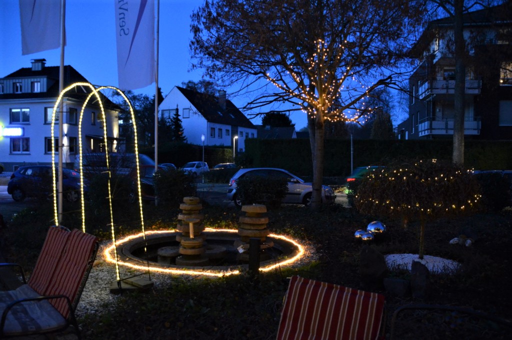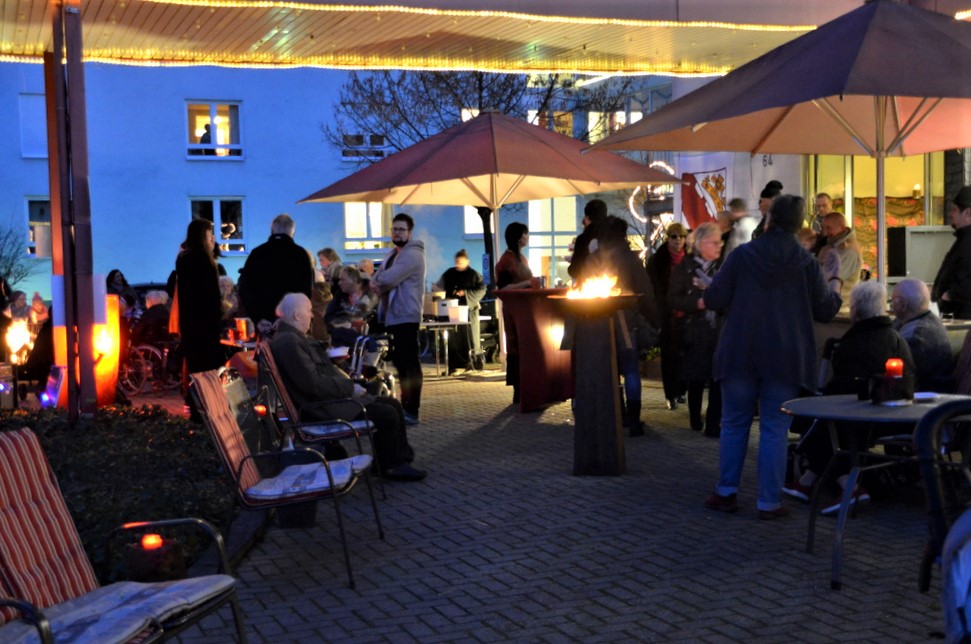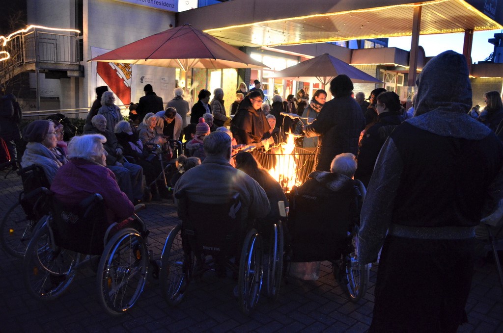 „Der Mittelaltermarkt findet jedes Jahr statt und erfreut sich immer großer Beliebtheit“, berichtete Einrichtungsleiterin Ina Beilstein. Sie war mit ihrem Team natürlich ebenfalls in mittelalterlicher Tracht erschienen. Feuerstellen und zahlreiche Lichterketten tauchten die Außenanlage bei beginnender Dunkelheit in ein stimmungsvolles Licht. Als Highlight zeigte die Feuerschluckerin Isabelle Mertens ihre Kunst.