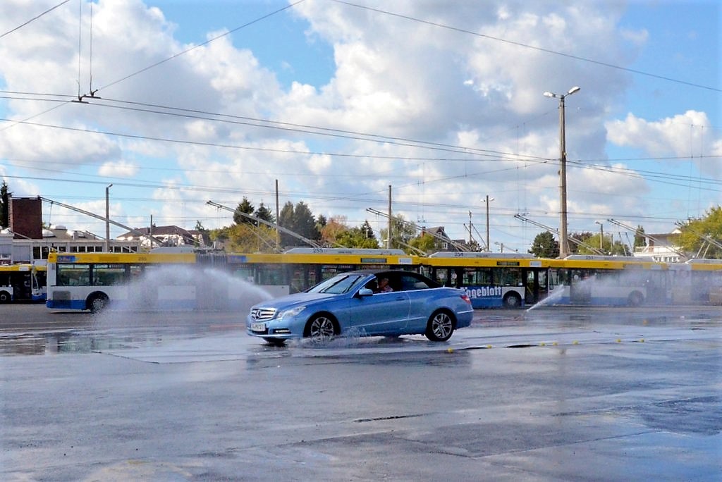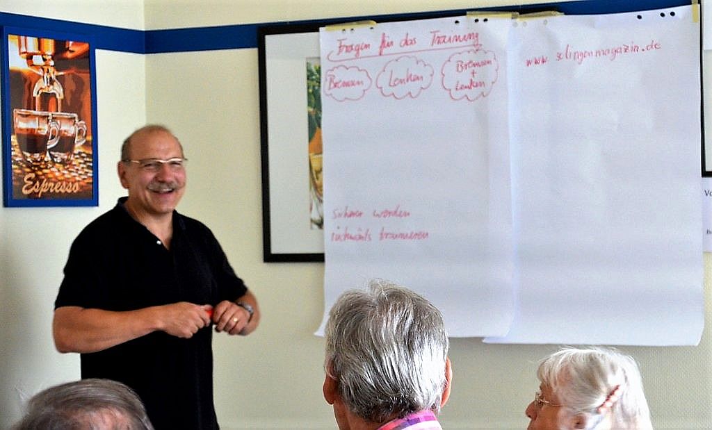 Am Samstag gab es mit der Verkehrswacht Solingen für Seniorinnen und Senioren ein Fahrsicherheitstraining auf dem Gelände der Solinger Verkehrsbetriebe an der Weidenstraße. Ulrich Schmidt, Verkehrssicherheitsexperte der Polizei, coachte die acht Teilnehmer mit viel Schwung und guter Laune. Der überwiegende Teil der drei Frauen und fünf Männer war als Wiederholungstäter dabei. „Wir wollen unsere Kenntnisse wieder auffrischen und das richtige Verhalten üben“, gaben die meisten als Grund für ihre Teilnahme an. Und zum Üben ist das Gelände an der Weidenstraße bestens geeignet.