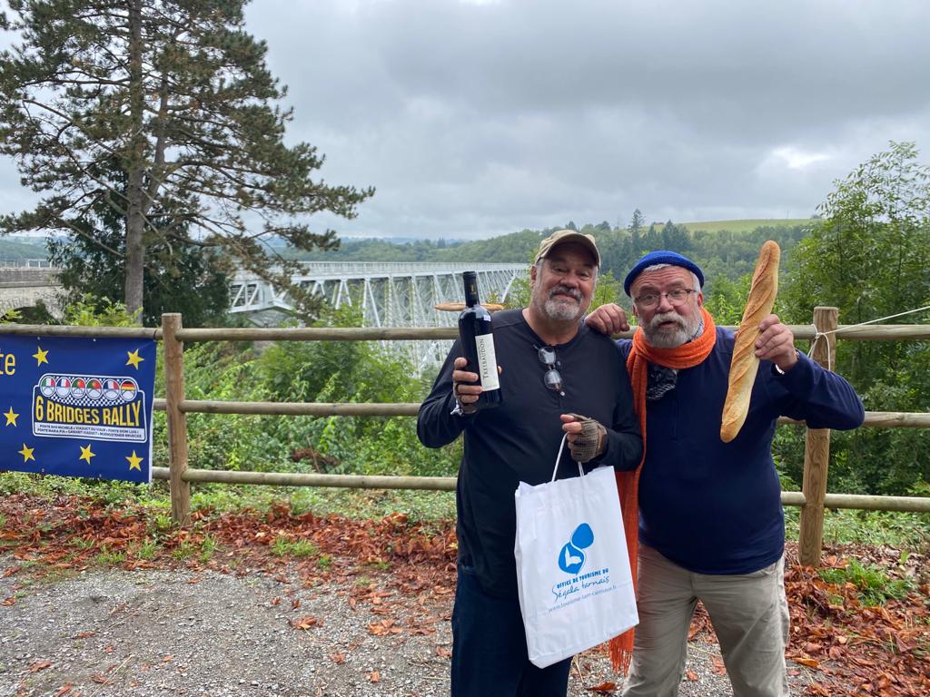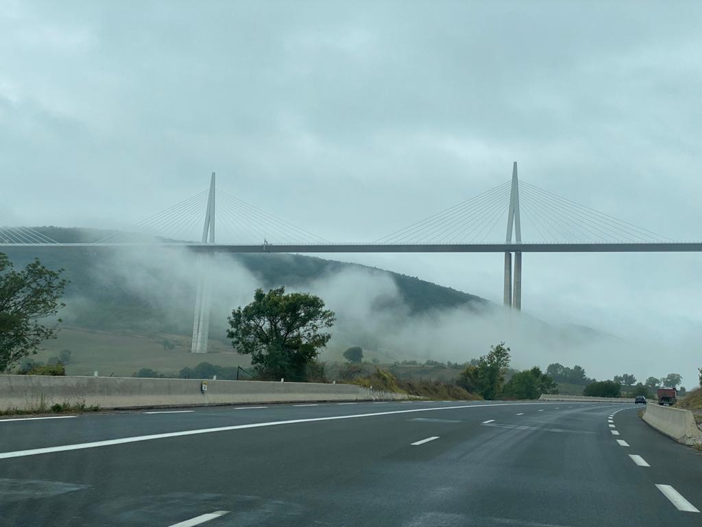 Die Strecken sind lang, oft zehn, elf Stunden am Tag. Fast immer über schöne Landstraßen, auf denen man sich mehr Zeit wünscht als man hat. Von Italien sind wir über die Berge gekommen. Sind gefahren und haben dabei europäische Geschichte gelernt. Von den Templern zum Beispiel, denen übel mitgespielt wurde. Die Nacht in kleinen Hotel. Team Friedensdorf und Team 112 sitzen am Tisch. Es gibt Rotwein, Bier, Wurst, Käse und tatsächlich immer noch Reste vom Stöcker Brückenbrot. Wer allein auf der Strecke ist, freut sich über Gesellschaft am Abend. Der Tag beginnt mit einer phantastischen Kulisse an der Tarn. Dann kommt zuerst diese gewaltige Autobahnbrücke bei Millau und dann – endlich – die Schwesterbrücke der Müngstener Brücke, die Viaduc du Viaur.