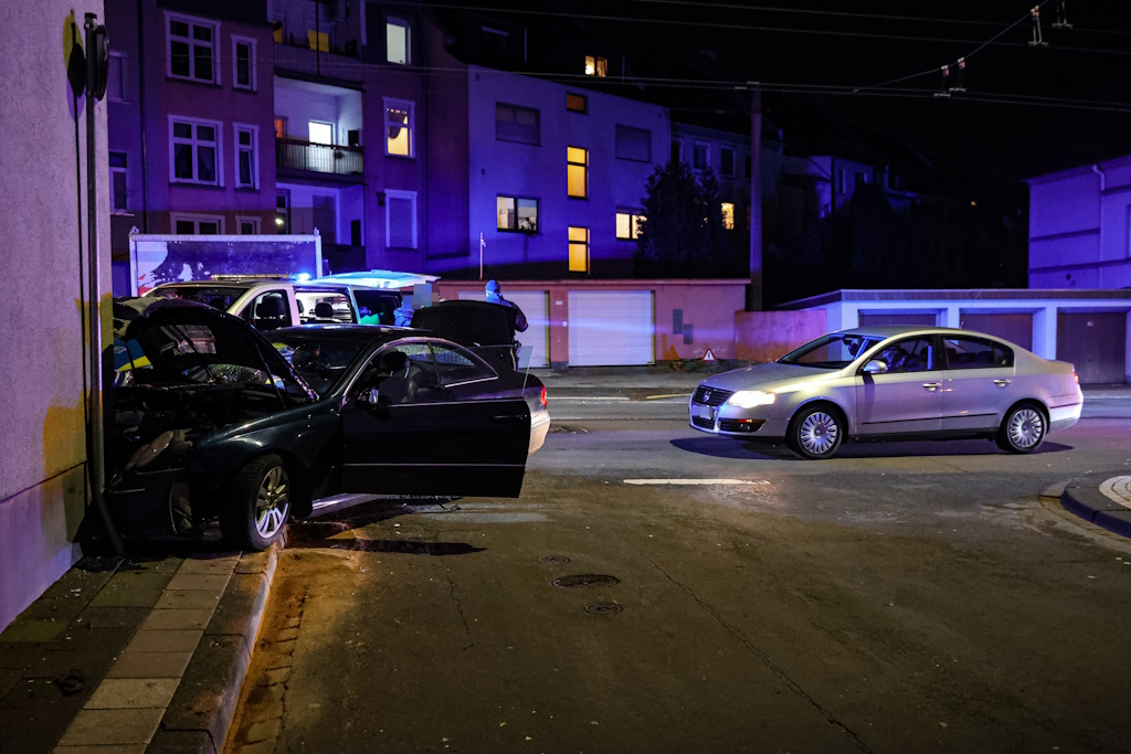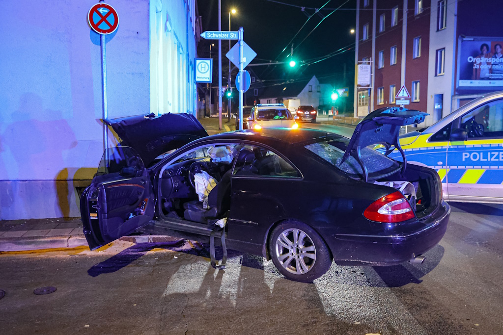 In Höhe der Einmündung zur Schweizer Straße kam das flüchtige Fahrzeug nach links von der Fahrbahn ab und prallte gegen eine Hauswand. Aufgrund des Verdachts des Fahrens unter Einfluss von Betäubungsmitteln, wurde dem 34-Jährigen eine Blutprobe entnommen. Zudem war er nicht im Besitz einer gültigen Fahrerlaubnis. Aufgrund des Unfalls ausgelaufene Betriebsstoffe entfernte die Feuerwehr.