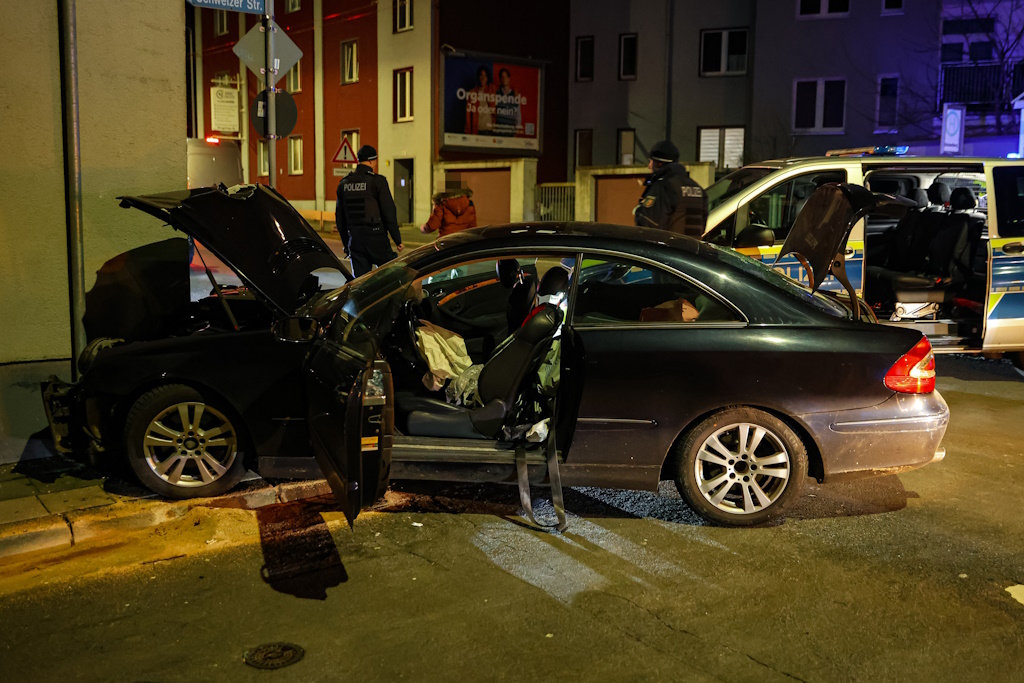 Im Bereich der Sudetenstraße überholte der Mercedes mehrere Fahrzeuge und fuhr dabei auf die Gegenfahrspur. Um einen Zusammenstoß mit anderen Verkehrsteilnehmern zu verhindern, bremste der Streifenwagen bis zum Stillstand ab. Ein ebenfalls am Einsatz