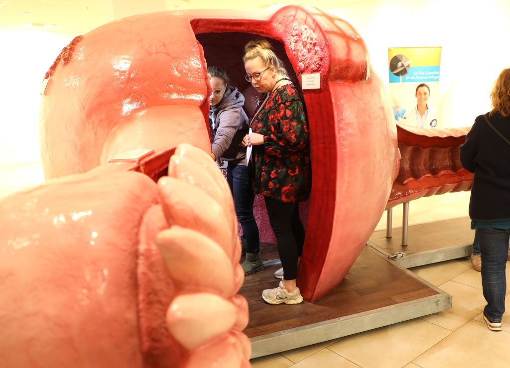 Im Mittelpunkt des Aktionstages stand ein begehbares Gebärmutter-Modell, das vielen Besucherinnen und Besuchern einen anschaulichen Einblick in Anatomie und Funktion der weiblichen Organe ermöglichte. Mit einem Augenzwinkern lud Dr. Iborra die Gäste dabei sogar ein, „noch einmal in die Gebärmutter zurückzukehren“. Das allerdings ganz bewusst und informativ durch das Modell.
