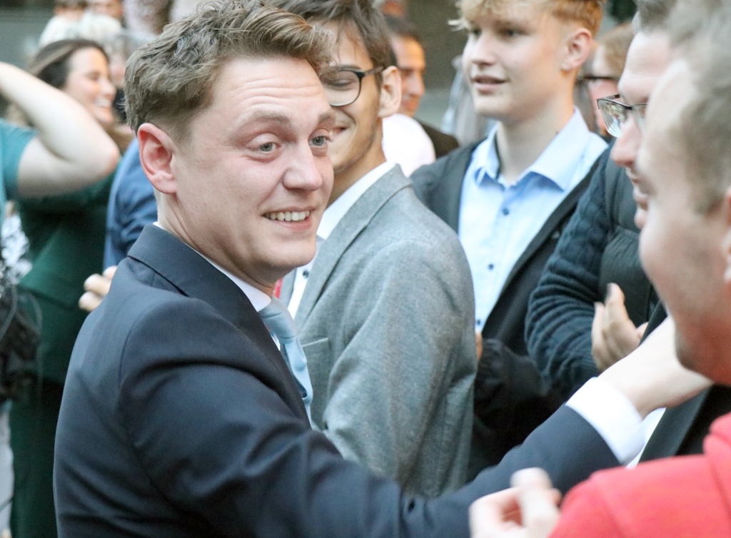 Wie schon im ersten Wahlgang fand auch zur Stichwahl der Wahlabend der Stadt Solingen in der Gläsernen Werkstatt statt. Kurz vor 19 Uhr traf Daniel Flemm dort ein – unter lautstarkem Jubel seiner Anhänger. Der CDU-Kandidat wurde von Parteifreunden und Unterstützern gefeiert, noch bevor das vorläufige Endergebnis offiziell verkündet war.