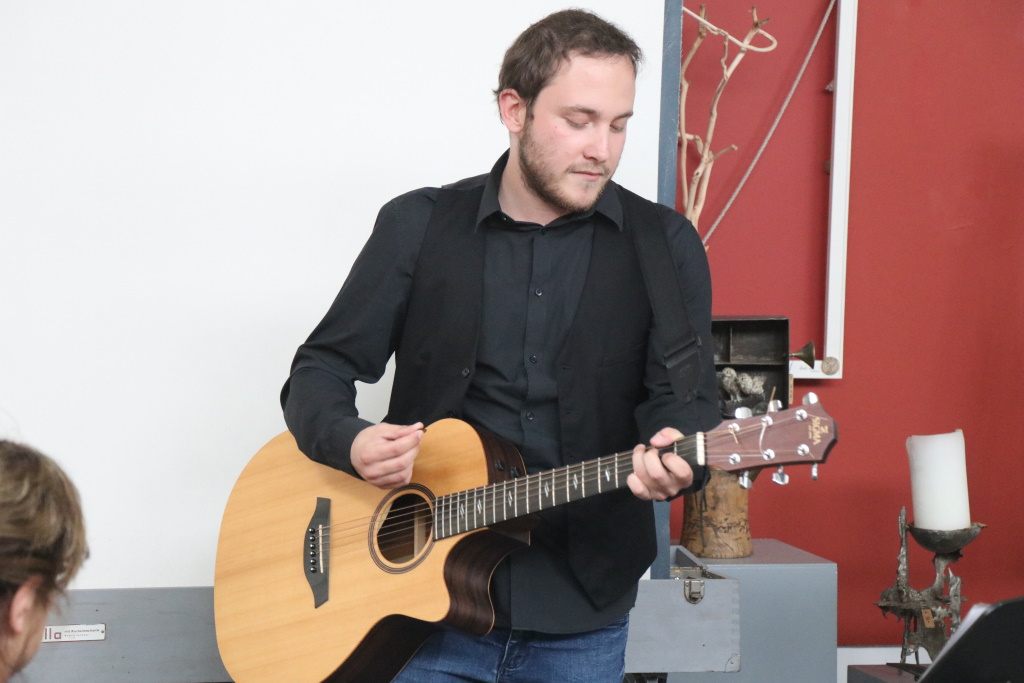 Musikalisch erklärte Robert Schreiber dem Viehbachtal seine Liebe, Noten und Liedtext findet man im Buch. Der Clou: Alle Texte sind mit einem QR-Code versehen. Scannt man diesen per Smartphone, bekommt man ein Video zur jeweiligen Geschichte präsentiert. Denn alle Autoren haben ihre Werke an ihren Lieblingsplätzen noch einmal in eine Kamera vorgetragen. So lässt sich Robert Schreibers Song also nicht nur „lesen“, sondern man kann dem Musiker beim Spielen und Singen des Stücks am Viehbachtal zuschauen – und zuhören.