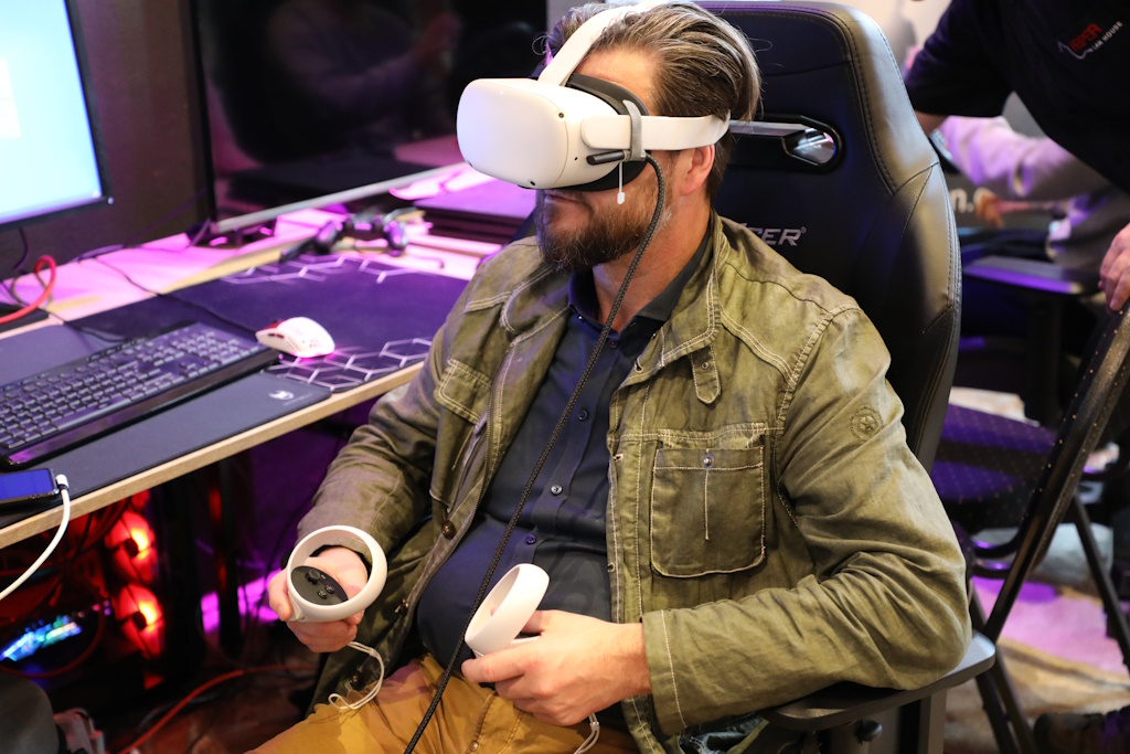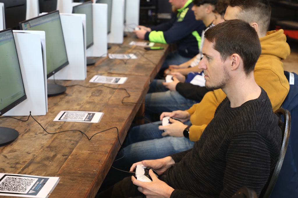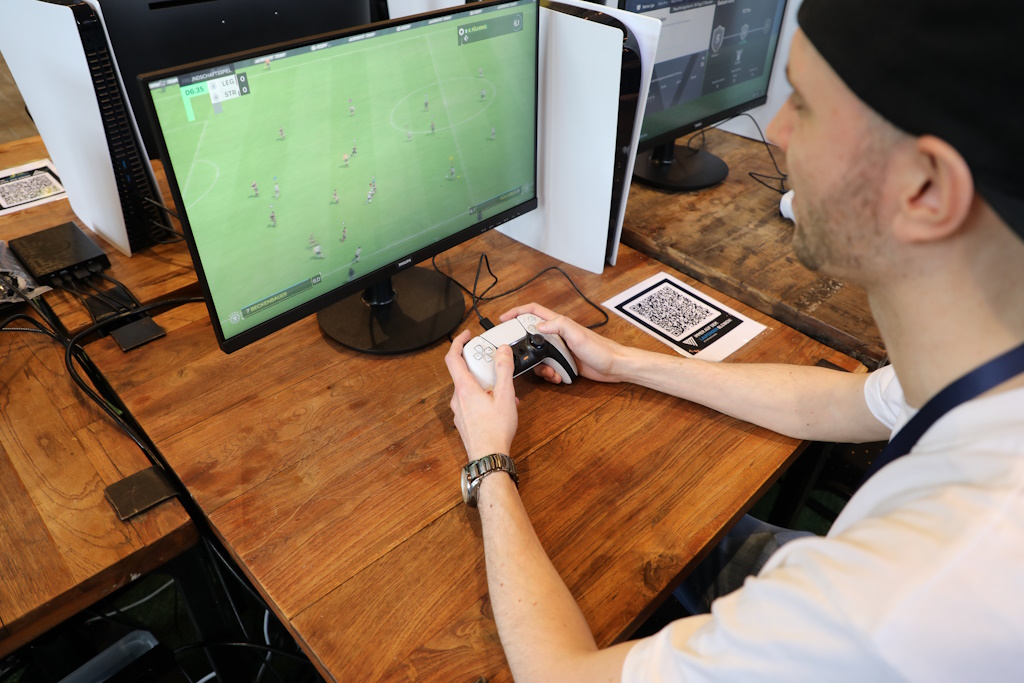 Zu sehen und vor allen Dingen zu erleben gab es einiges. „P1-Gaming“ kam beispielsweise mit zwei großen Simulatoren zur Convention. Besucher konnten dort Platz nehmen und virtuelle Rennen fahren. Ein Angebot, das gerne angenommen wurde. Gleich nebenan warteten ganze 14 Playstation 5-Konsolen auf Spieler. Dort traten Teams im Fußballspiel „Fifa“ (heute EA Sports FC 24) im Modus „7 vs 7“ gegeneinander an. An gleich mehreren Ständen konnten virtuelle Welten mit VR-Brillen betreten werden. „Stück für Stück wecken wir auf diese Weise auch das Interesse der Unternehmen für dieses Thema. Das wird in den nächsten Jahren mehr werden. Wir haben ja gesagt, dass wir bei den jungen Leuten anfangen, die später in die Unternehmen kommen und das mitnehmen“, machte Frank Balkenhol deutlich.