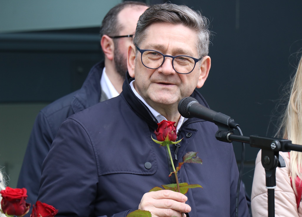 Kaum jemand hätte sich vorstellen können, so Neumann weiter, dass man zwei Jahre später vor dem Solinger Rathaus stehen würde, um der vielen Opfer des Krieges zu gedenken. Kurz nach Kriegsausbruch war der Solinger Landtagsabgeordnete an der polnisch-ukrainischen Grenze (wir berichteten). Dort habe er Abschiedsszenen erlebt. Männer mussten an die Front und mussten sich von der Familie trennen, Frauen und Kinder blieben im sicheren Polen. „Ich denke, dass viele für sich geglaubt haben, dass das vielleicht nur einige Wochen dauern wird. Oder ein paar Monate. Jetzt müssen wir zwischenzeitlich feststellen, dass es Menschen gibt, die seit zwei Jahren an der Front sind“, erinnerte Josef Neumann.