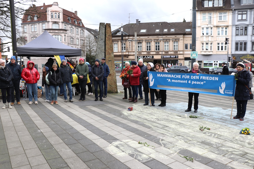 Die 24-stündige Mahnwache wird von ukrainischen Männern besetzt, die sich eigens dafür gemeldet haben. Für Versorgung vor Ort ist gesorgt. Über Besucher, die eine Kerze oder eine Blume legen möchten, freuen sich die Veranstalter. Um 15 Uhr geht es am Samstag an gleicher Stelle mit der Kundgebung „Nein zum Krieg in Europa“ weiter. Im Zentrum Frieden an der Wupperstraße folgt ab 18 Uhr ein bunter Abend mit Programm (wir berichteten hier).