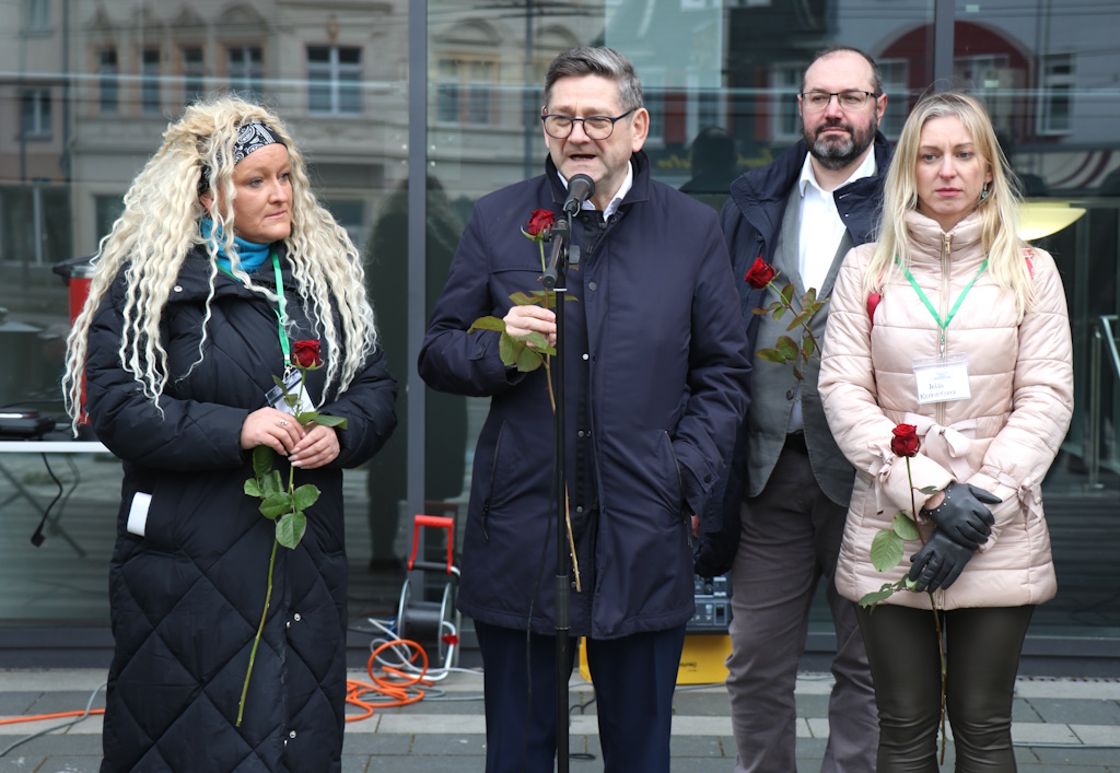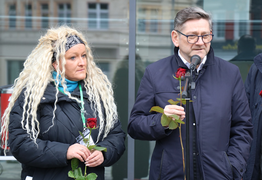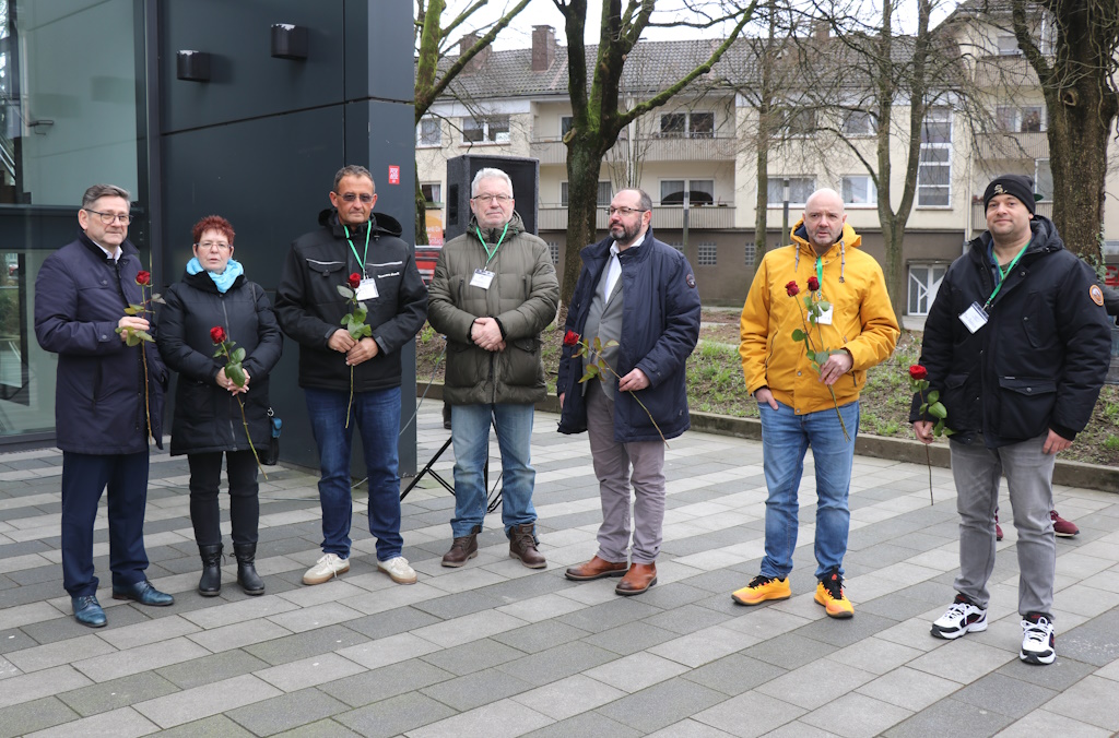 Kaum jemand hätte sich vorstellen können, so Neumann weiter, dass man zwei Jahre später vor dem Solinger Rathaus stehen würde, um der vielen Opfer des Krieges zu gedenken. Kurz nach Kriegsausbruch war der Solinger Landtagsabgeordnete an der polnisch-ukrainischen Grenze (wir berichteten). Dort habe er Abschiedsszenen erlebt. Männer mussten an die Front und mussten sich von der Familie trennen, Frauen und Kinder blieben im sicheren Polen. „Ich denke, dass viele für sich geglaubt haben, dass das vielleicht nur einige Wochen dauern wird. Oder ein paar Monate. Jetzt müssen wir zwischenzeitlich feststellen, dass es Menschen gibt, die seit zwei Jahren an der Front sind“, erinnerte Josef Neumann.