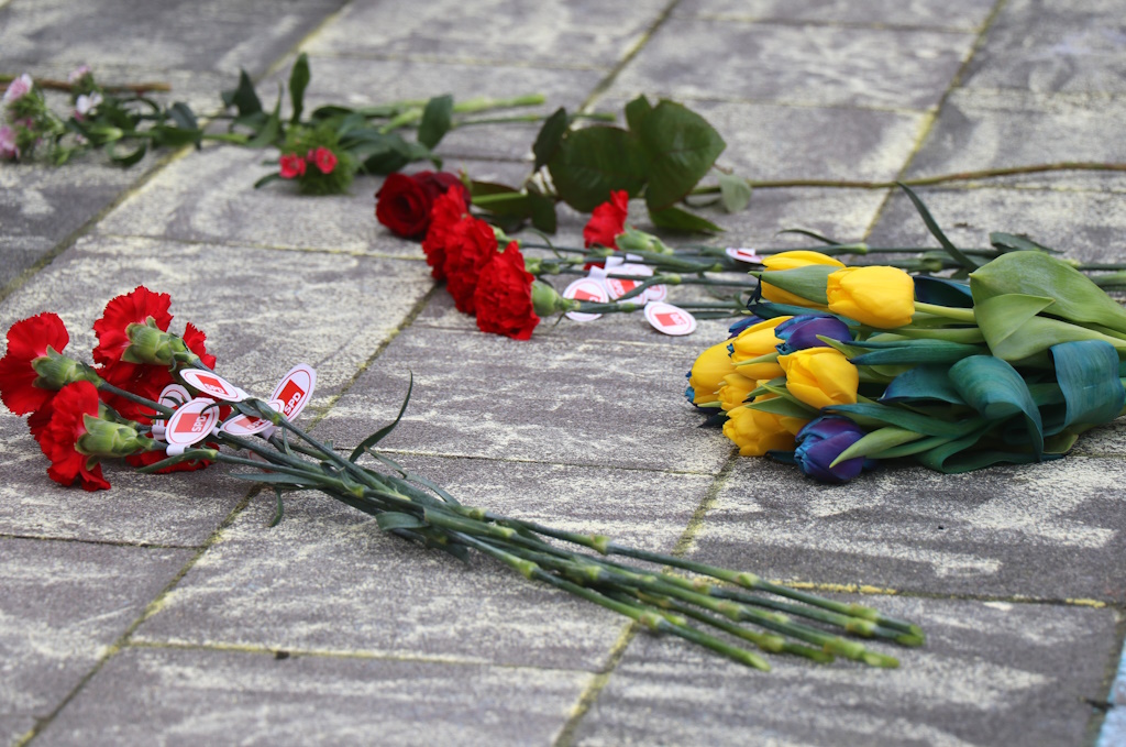 Gedenken und Trauer: Anwesende legen Blumen nieder