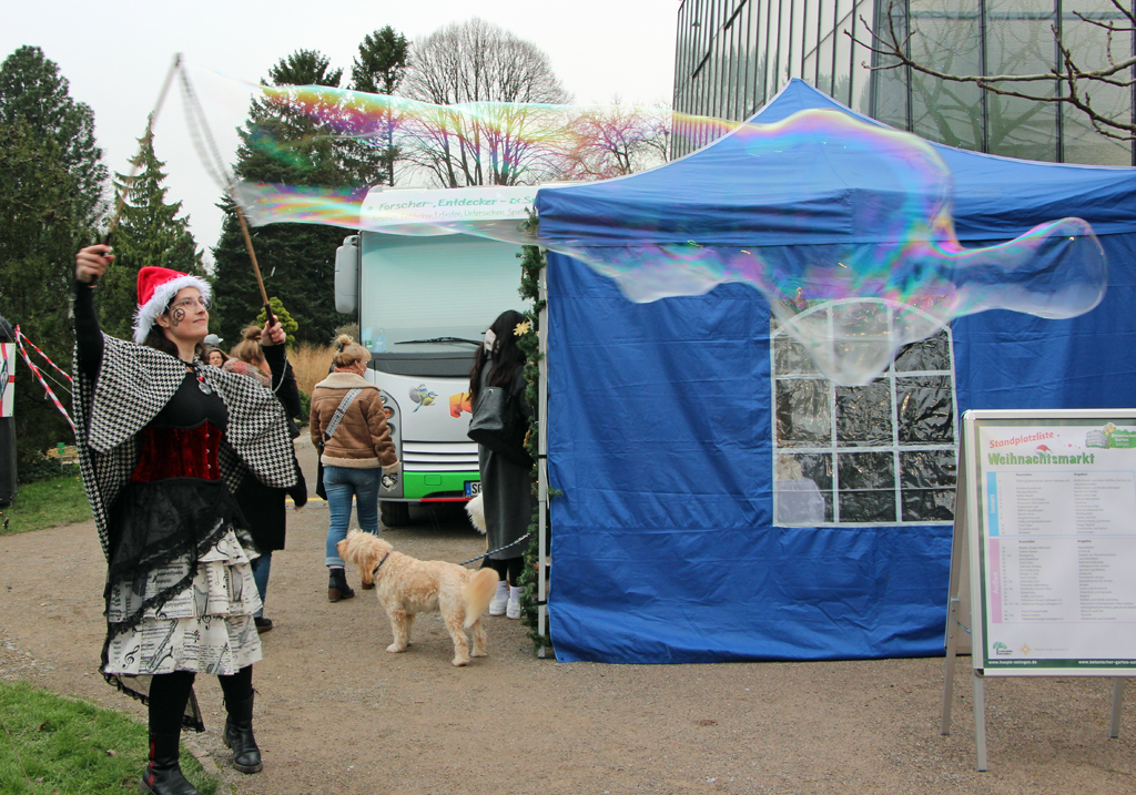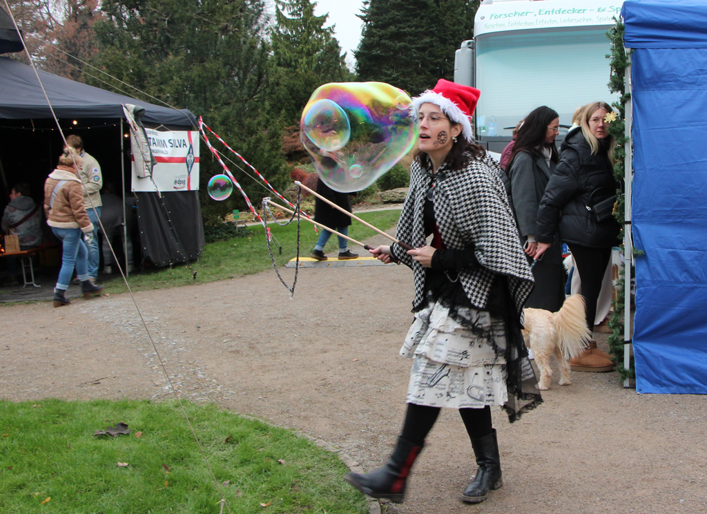 Walking Acts verzaubern ebenfalls die Besucher des ersten Weihnachtsmarktes. Remy Matelot erschafft immer wieder magisch schimmernde Seifenblasen, die vom Wind über die Zuschauer hinweggetragen werden. Außerdem darf natürlich auch der Weihnachtsmann nicht fehlen, der nicht nur die Kinder zum Staunen bringt und für die weihnachtliche Stimmung sorgt.