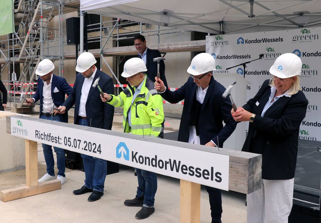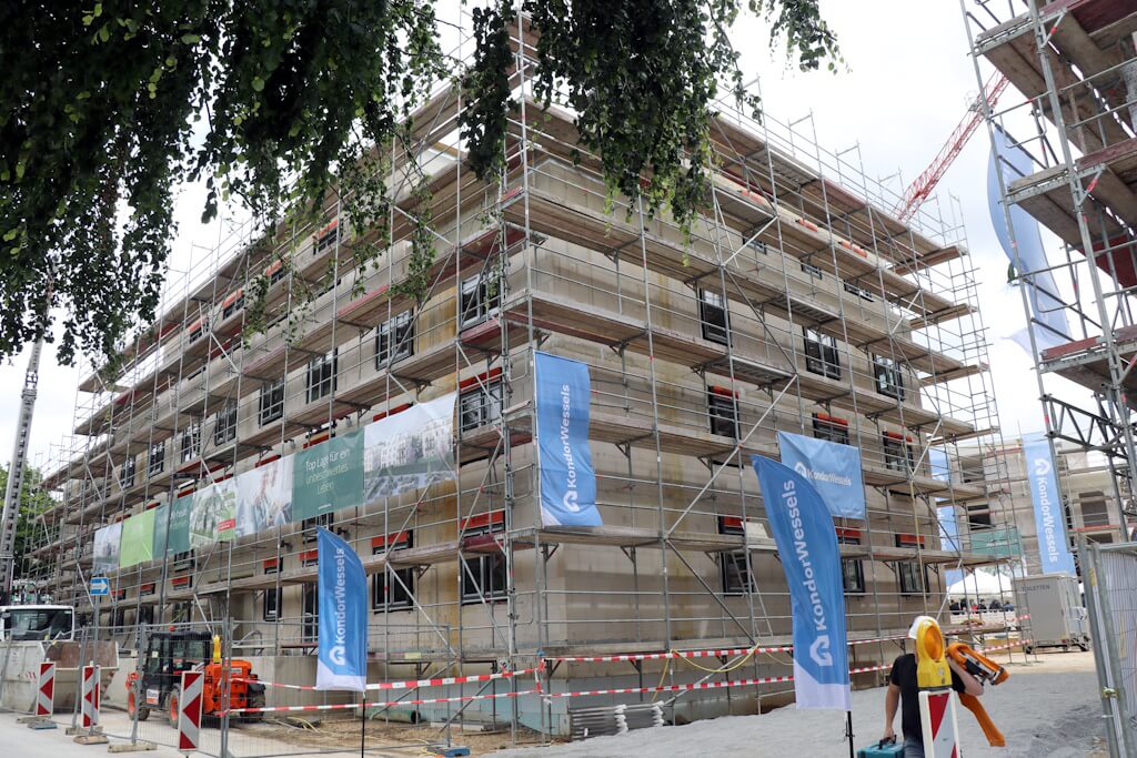 2023 erfolgte die Grundsteinlegung des neuen Wohnquartiers „Greeen“ an der Locher Straße. In Wald sei man im Zeitplan. „Wir hoffen, dass wir dieses Projekt im vierten Quartal 2025 abschließen können“, betonte de Man. Über 14.000 Quadratmeter reine Wohnfläche können bezogen werden. Zudem warten 167 Tiefgaragenstellplätze auf Autos. Rund 56 Millionen Euro wurden und werden in das Großprojekt investiert. „Allerdings lässt der Verkauf noch zu wünschen übrig. Wir haben bisher ein knappes Drittel der Wohnungen verkauft“, machte Leo W. A. de Man deutlich. Der Vertrieb der Wohnflächen läuft derweil bereits seit 2022. Kondor Wessels hofft darauf, dass der Vertrieb wieder anziehen wird, sobald sich „der Markt stabilisiert hat“.
