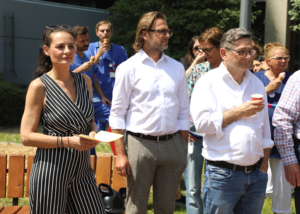 Auch die Klinikleitung – Prof. Dr. Martin Eversmeyer und Prof. Dr. Thomas Standl – sowie Aufsichtsratsvorsitzender Kai Sturmfels begleiteten das Projekt mit großer Unterstützung. Doch damit nicht genug: In einem nächsten Schritt wird der Spielplatz um eine Schaukel, ein Hochbeet und ein Insektenhotel erweitert. Die Finanzierung dieser Erweiterungen ist durch die Geschäftsleitung des Klinikums bereits gesichert.