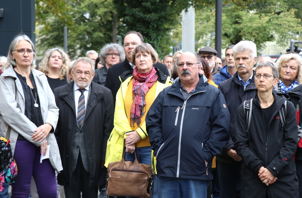 „Ich war zu Yom Kippur in der Synagoge, die ich dann etwas früher verlassen habe. Mein erster Gedanke war, dass vor 46 Jahren in Israel der Yom-Kippur-Krieg begann“, so Leonid Goldberg. 1973 nutzten Ägypten und Syrien den höchsten jüdischen Feiertag – das Versöhnungsfest Yom Kippur – zu einem Überraschungsangriff auf den jüdischen Staat. Ein verlustreicher Krieg war die Folge. Goldberg war seinerzeit selbst Soldat in Israel. „Gottseidank gibt es hier und heute so viele Menschen, die mitfühlen und an unserer Seite stehen“, sagte der Vorsitzende der Jüdischen Kultusgemeinde.