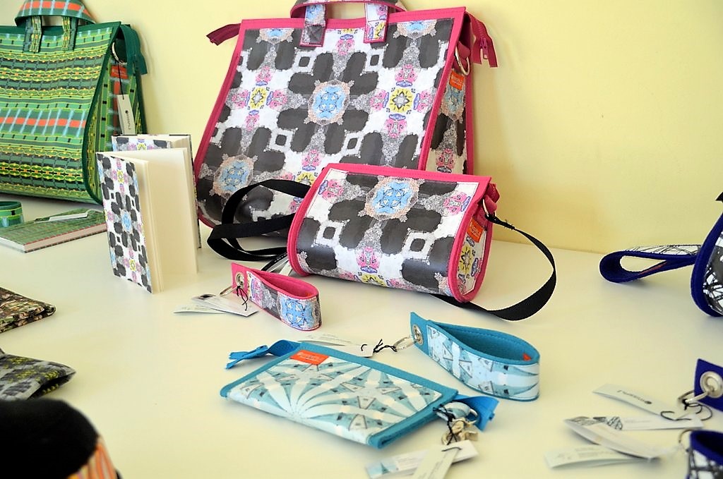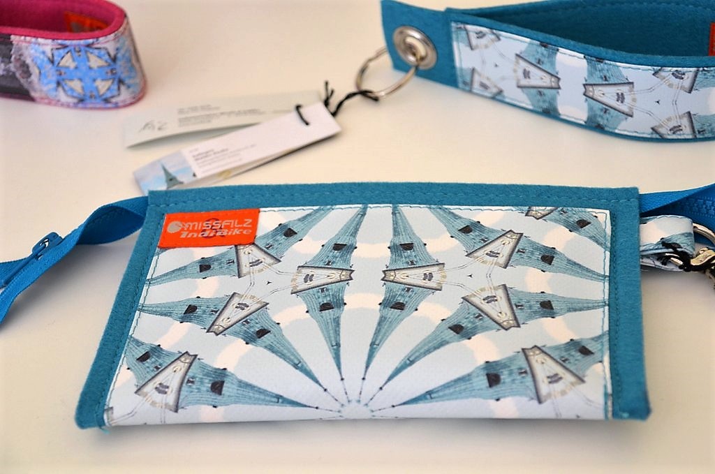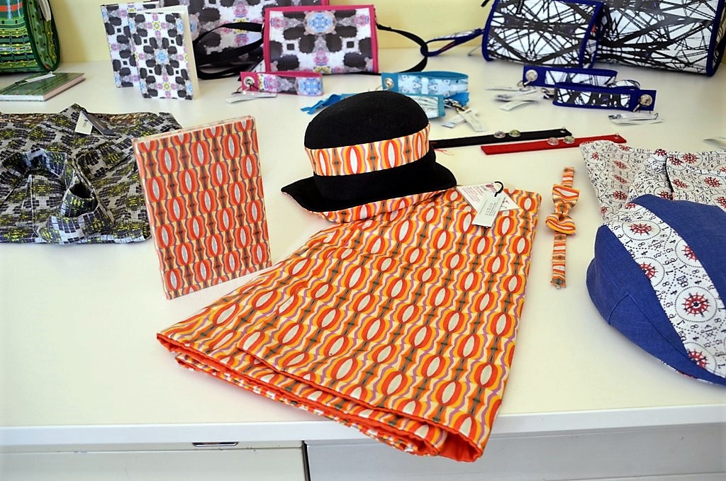 Bei Clara Schmidt sind es ihre Notizbücher. Missfilz Silke Peukert entwirft Taschen, Kleidungsstücke und Kissen. IndiBike Uwe Weis stellt Motoradsitze und Packtaschen her. Hutmacherin Bea Kahl hat eine Herrenkollektion mit Flat Caps entworfen. „Ich kombiniere das Muster mit dazu passenden Farben“, beschreibt die Hutmacherin ihre Arbeit. „Weiter gibt es Damenhüte, Krawatten und Fliegen mit den gleichen Designs.“ Unter anderem ist ein Detail aus dem Diederichstempel verwendet worden. Bald sollen Regenmäntel und Südwester die Kollektion erweitern.
