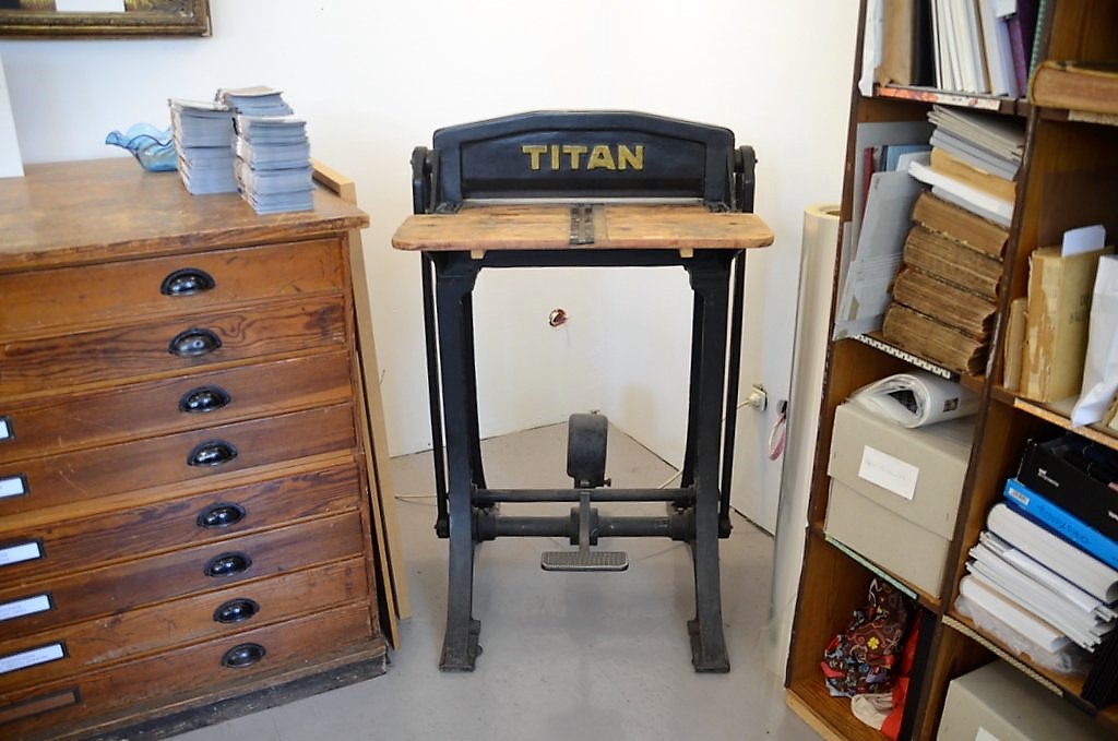 Währenddessen versuchen sich die kleineren Besucher in der Buchbinderei falz & faden an einer alten mechanischen Schreibmaschine. Ganz schön schwer, mit so viel Kraftaufwand zu schreiben. Das geht auf den heutigen Tastaturen wesentlich einfacher. Wer eine kleine Pause einlegen möchte, kann es sich im Garten bei Kaffee und Waffeln gemütlich machen. Auch der Grill ist bereits angeworfen.
