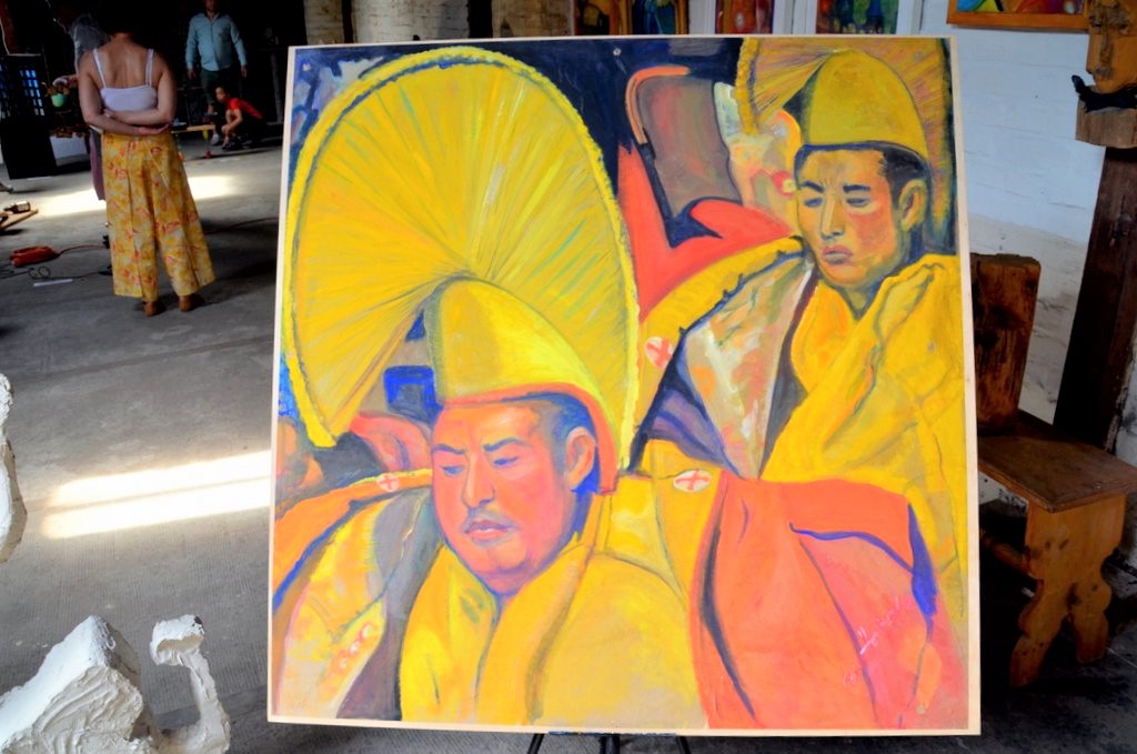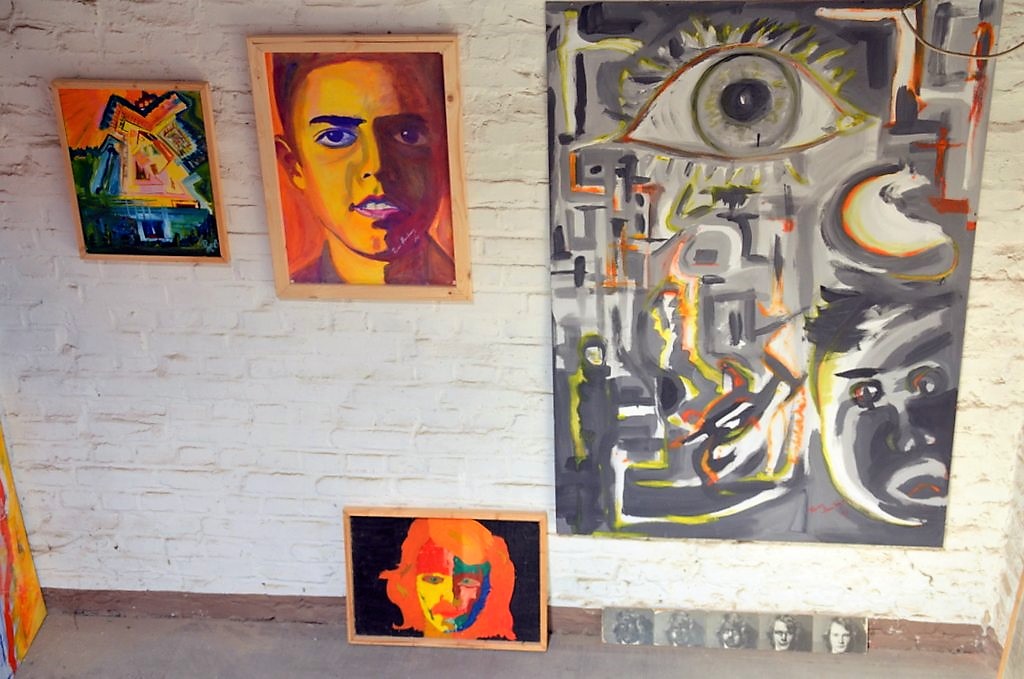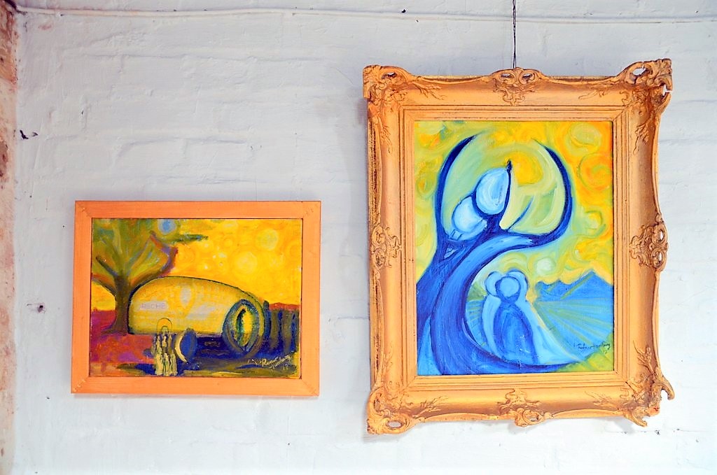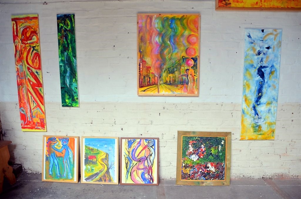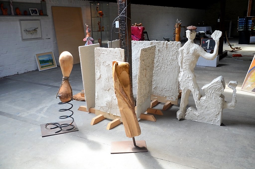 Zwei der ansässigen Künstler sind auch vor Ort. Sie haben eine Vielzahl ihrer Werke ausgestellt und wissen Interessantes darüber zu berichten. Reiner Homburg: „Ich bin sehr breit aufgestellt. Vor langer Zeit habe ich mit Aquarell und Bleistiftzeichnungen angefangen. Dabei male ich von abstrakt bis exzessiv-gegenständlich.“ Im Lauf der Zeit hat sich ein Hang zum Naturalistischen und Gegenständlichen herauskristallisiert. Bei den Formaten wählt der gelernte Kunsterzieher aus dem Bauch heraus. „Ich male Großformatiges, aber mag ebenso Miniaturen.“ Auch im Dreidimensionalen ist der Künstler unterwegs. Titel gibt er seinen Werken nicht. „Natürlich steckt viel Persönliches darin. Ich bringe ja eigene Erfahrungen in die Werke ein. Doch ich finde es immer spannend, was andere in den Arbeiten wiederfinden.“