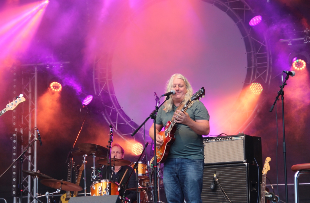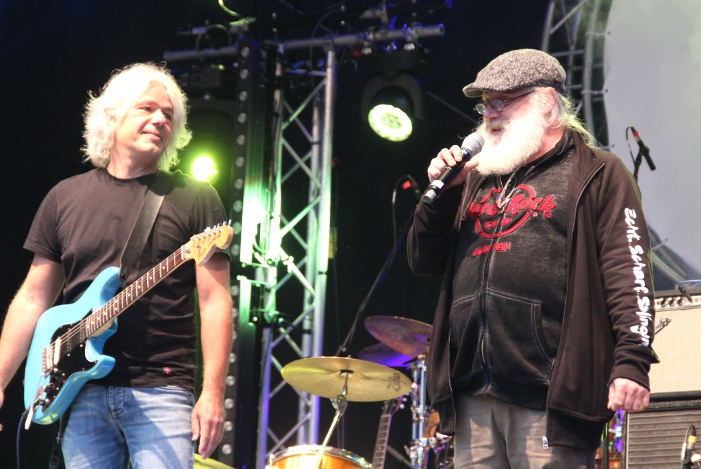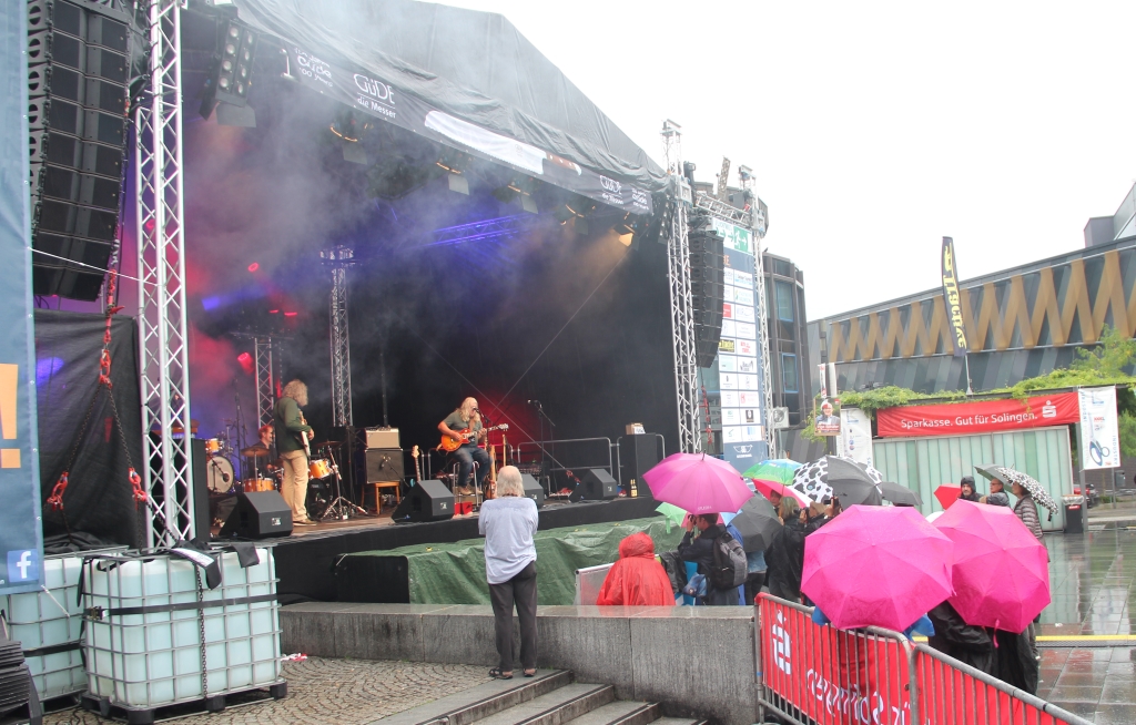 SOLINGEN (bgl) – Pünktlich um 17.30 Uhr war auf dem Neumarkt wirklich alles angerichtet. Das Bier war bestens gekühlt, die Würstchen brutzelten auf dem Grill und mit der Solinger Kombo „Blueshunde“ standen Musiker auf der Bühne der 11. Sommerparty Echt.Scharf.Solingen, die ihr Handwerk verstanden und bereits zum Auftakt am Freitagnachmittag ein echtes musikalisches Feuerwerk losließen.