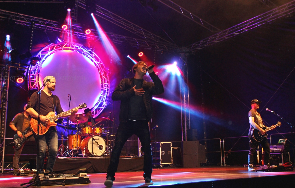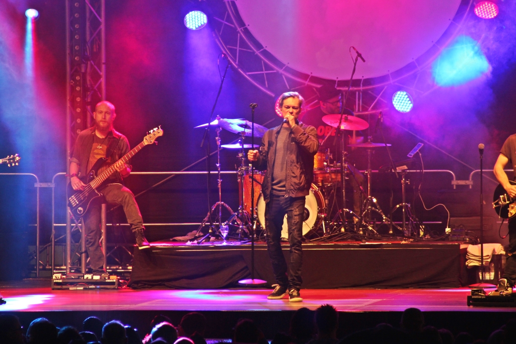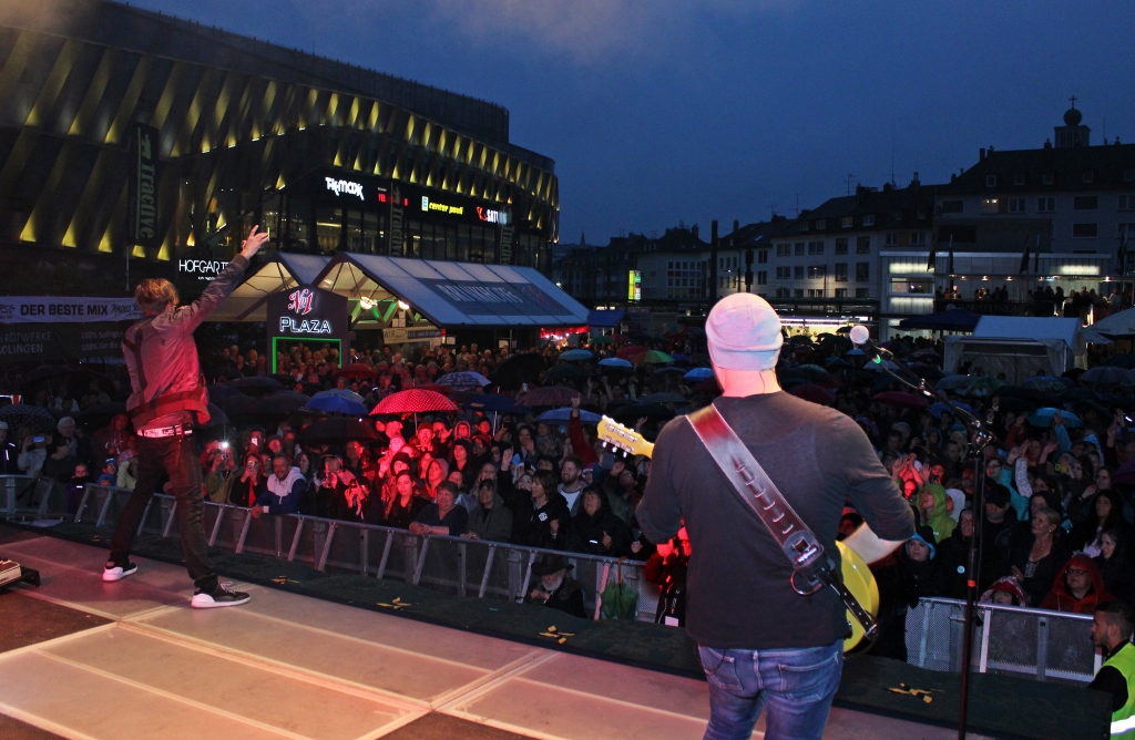 Und so langsam wurde auch der Neumarkt voller. Spätestens um 21 Uhr war das schlechte Wetter kein Thema mehr, als Top-Act Thomas Godoj die Bühne stürmte und die inzwischen auf mehrere Tausend Fans angewachsene Menge ihm auf dem Konzertplatz zujubelte.