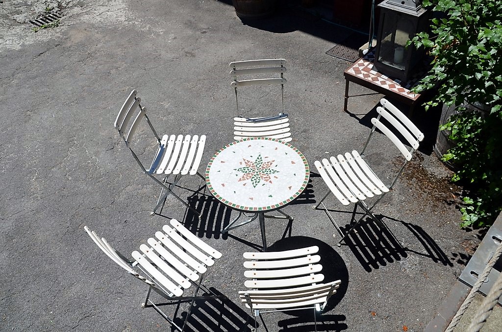 Drinnen und draußen gibt es gemütliche Sitzgelegenheiten. Dazu frischen Kaffee und selbstgebackenen Kuchen. (Foto: © Martina Hörle)