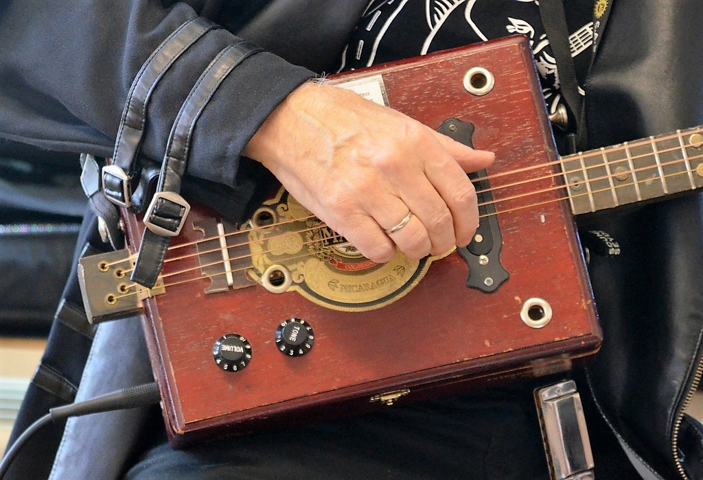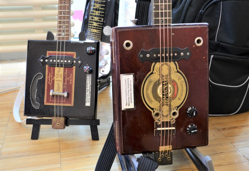 „In Amerika ist das schon seit vielen Jahren Tradition“, führt Bükow aus. Musiker, die über wenig Geld verfügten, nutzten das Zedernholz der Zigarrenkisten gerne für den Bau ihrer Instrumente. Diese Tradition hat Bükow aufgegriffen. „Jedes Stück ist ein Unikat. Auch der Sound ist jedes Mal ein anderer.“ Zwischen seinen Songs gibt er den Zuhörern kleine geschichtliche Rückblicke. Viele Gitarren-, Jazz- und Bluesgrößen haben ihre ersten musikalischen Schritte auf einer solchen Gitarre gemacht bzw. besaßen eines dieser Instrumente. Auch Jimi Hendrix, George Benson und Louis Armstrong hatten darauf musiziert.