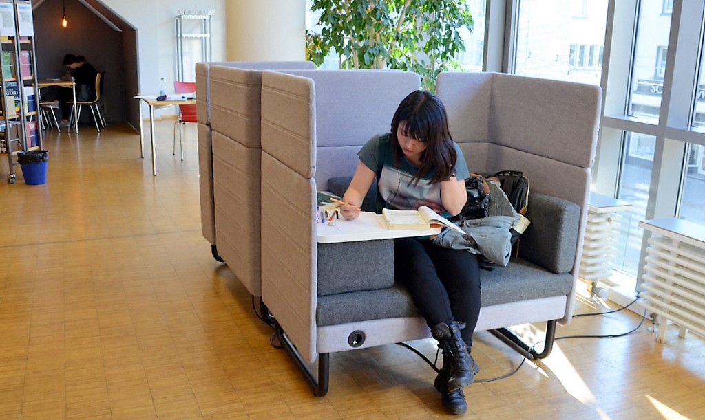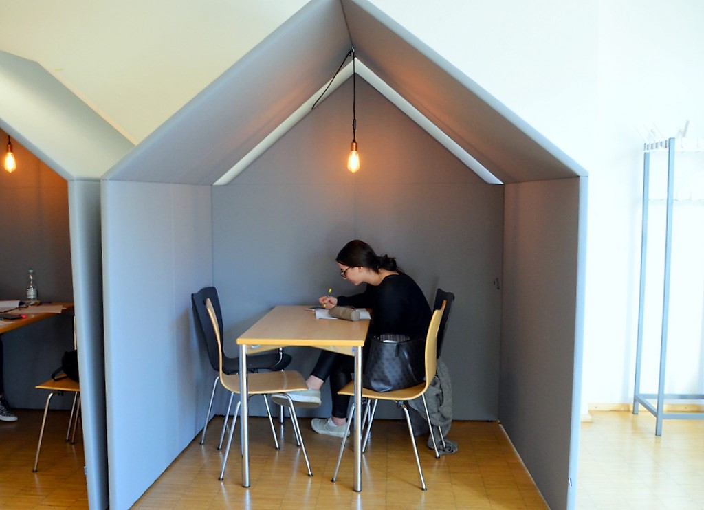 Im lern/Raum (1. OG) bieten räumlich und akustisch abgeschirmte Häuschen (The Hut) ebenso wie Arbeitsnischen mit Raumteilerfunktion die Möglichkeit des ungestörten Lernens. Ein großes Infopoint-Tablet erlaubt Recherchemöglichkeiten in verschiedenen Apps sowie Zugriff auf die Online-Ausleihe. Der neue Maker-Bereich dient der Digitalisierung von alten Fotos, Dias und Schallplatten. Die Möglichkeit soll es bald auch für VHS-Kassetten geben. Workshops zu diesem Thema sind angedacht.