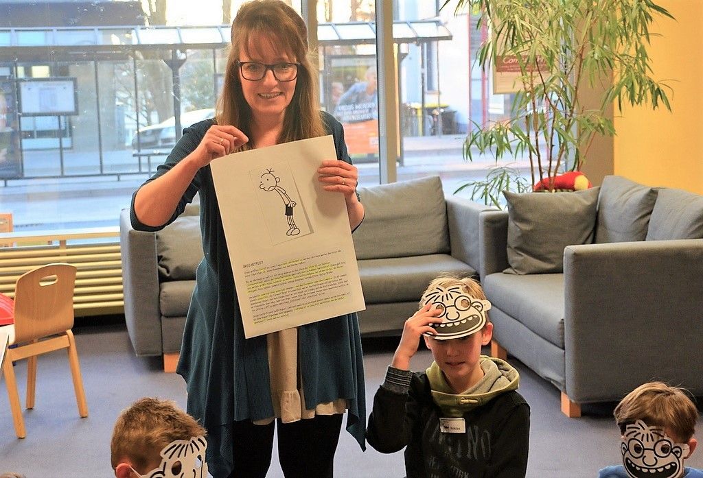 Zuvor stellte Charlotte Struckmeier ein paar kurze Fragen zu den einzelnen Charakteren im Buch. Da ging es um Gregs besten Freund Rupert, der ins Fernsehen kommt und ein Angsthase ist. Der älteste Bruder Rodrick spielt Schlagzeug und ist nicht gut in der Schule. Manni, der jüngere, ist eine Heulsuse und richtige Petze. Mom übertreibt mit ihrer Fürsorge und bringt Greg sein Pausenbrot auch schon mal in die Schule. Gregs Dad will ihn dauernd zum Sport animieren. Charaktere also, die viele aus eigener Erfahrung kennen.