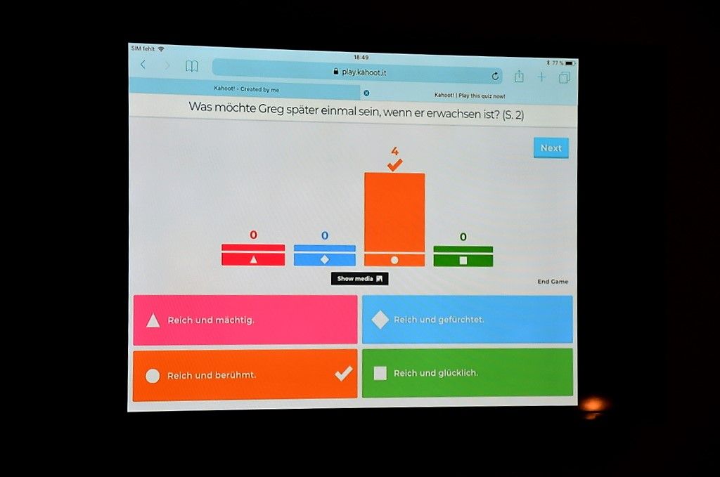 Beim Greg-Brettspiel „Balla“ mussten spezielle Aufgaben gelöst werden. „Leg auf jedes Knie einen Würfel und rutsch ca. 1,50 Meter rückwärts“, war nur eine von vielen. Mit Hilfe eines IPADS und des Greg-Buches konnten die Fragen vom Kahoot-Quiz gelöst werden. An der Wii-Gaming-Station bewältigte man die Strecke „Kuh“. Bei „Halloween mit Greg“ kostümierten sich die Kinder mit den unterschiedlichen Charakter-Masken.