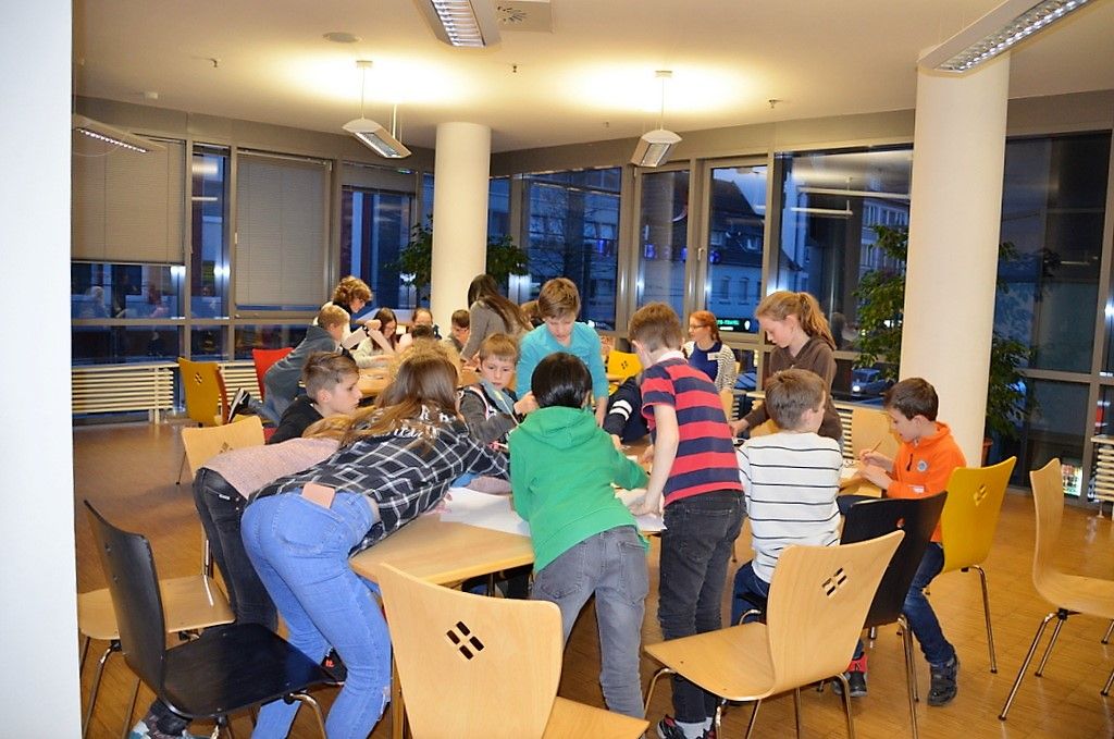 Die Erlebnisse, die er in diesem Buch festhält, begleiteten die Kinder und Jugendlichen in der Stadtbibliothek durch eine lange Samstagnacht. Die Mitarbeiterinnen und Mitarbeiter, federführend Sebastian Tobisch, hatten einen bunten Mix aus Lesen, Rätselspaß, Brett- und Videospiel und Kreativaktionen auf die Beine gestellt. Semesterpraktikant Tobisch studiert Bibliothekswesen und hat mit dieser Lesenacht sein eigenes Projekt entwickelt.