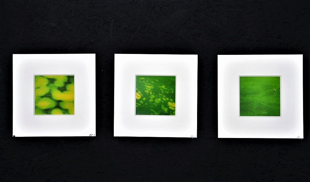 Ihre zweite mitgebrachte Serie zeigt drei Bilder einer Wasseroberfläche, die durch unzählige kleine grüne Blätter fast völlig verdeckt wird. Hier hat Sabri mit unterschiedlich starkem Zoom die Ansichten verändert. Ihre Aufnahmen lässt sie mal auf Papier oder MDF-Platten, mal direkt auf Leinwand drucken. Auch ihre Werke tragen keinen Namen. „Der Betrachter soll sich selbst ein Bild davon machen, was er sieht“, liefert sie schmunzelnd ein kleines Wortspiel.